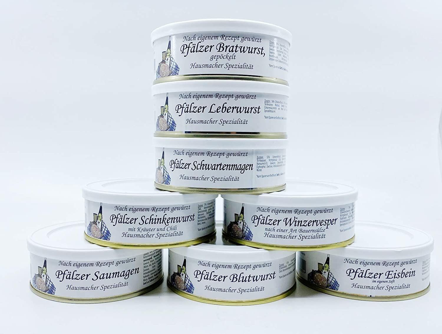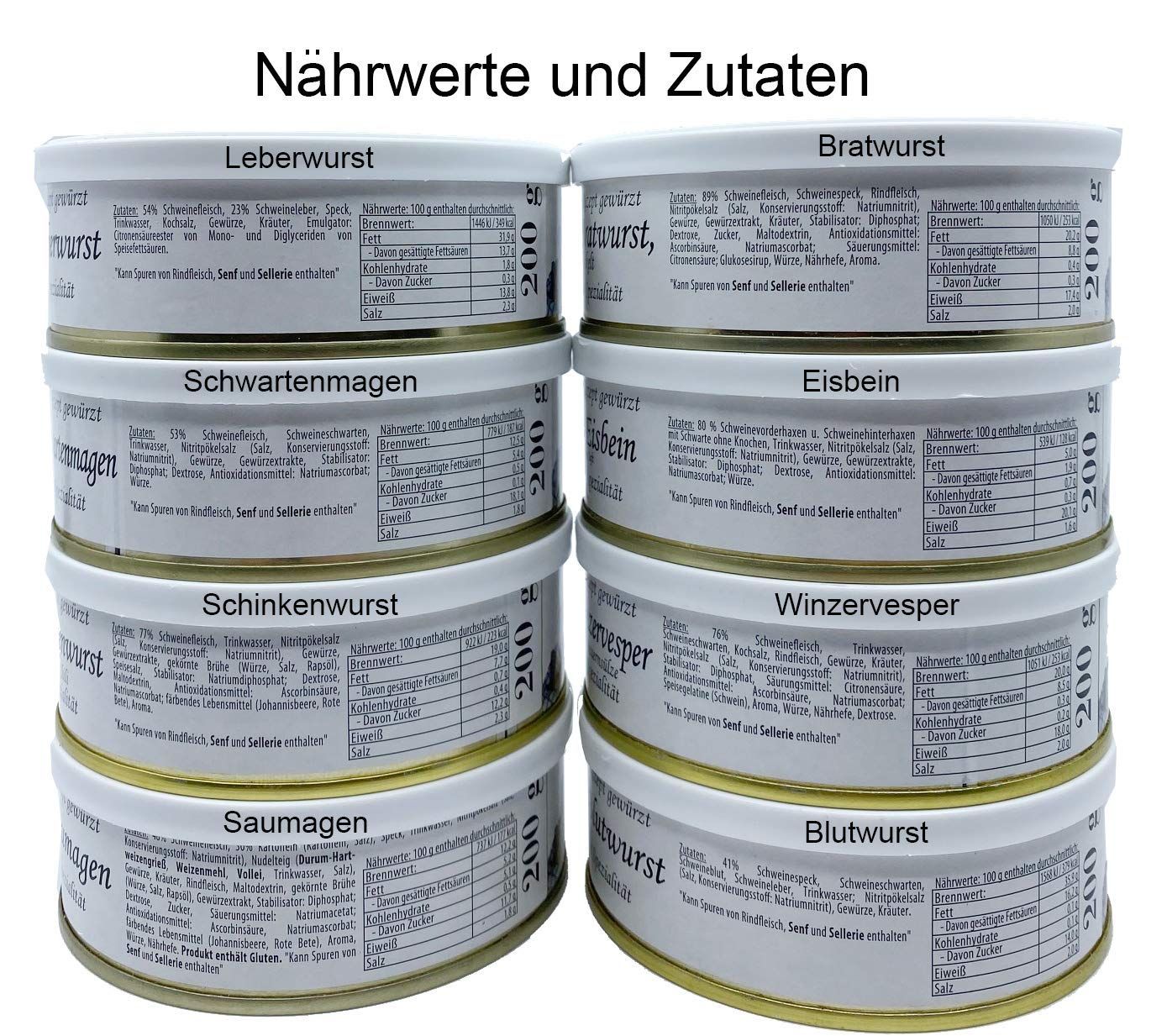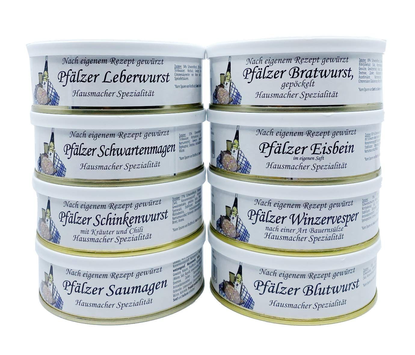 Pfälzer Wurstspezialitäten Dosenwurst Paket - 8 verschiedene Sorten im Geschenkpaket