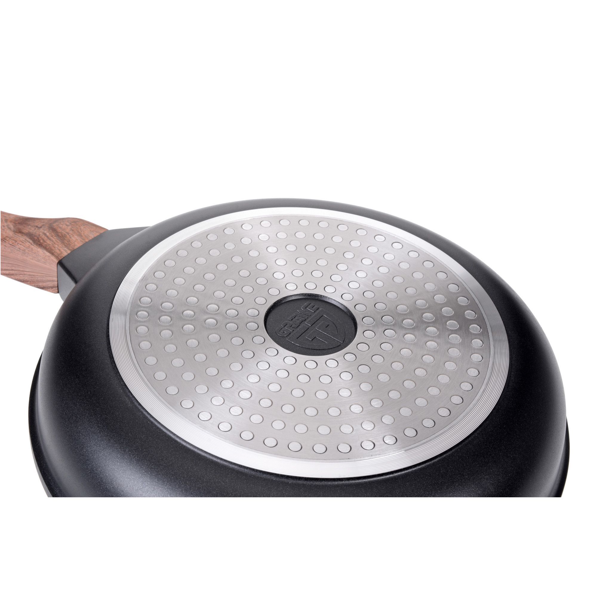 Bratpfanne, Profipfanne, Pfanne, Servierpfanne, Induktionsgeeignet, Aluguss, mit Deckel, Schmorpfanne, Sautierpfanne, Sautépfanne, Grillpfanne, Schmortopf, Bräter, Pfännchen, Universalpfanne, Unbeschichtet, 24, cm,