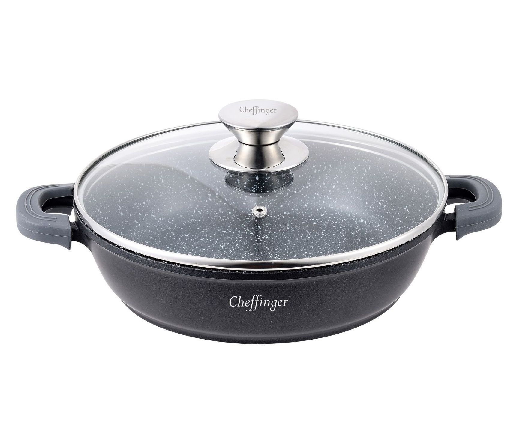 Pfanne Bratpfanne Schmorpfanne mit Glasdeckel Aluguss Ø28cm Cheffinger CF-SC28