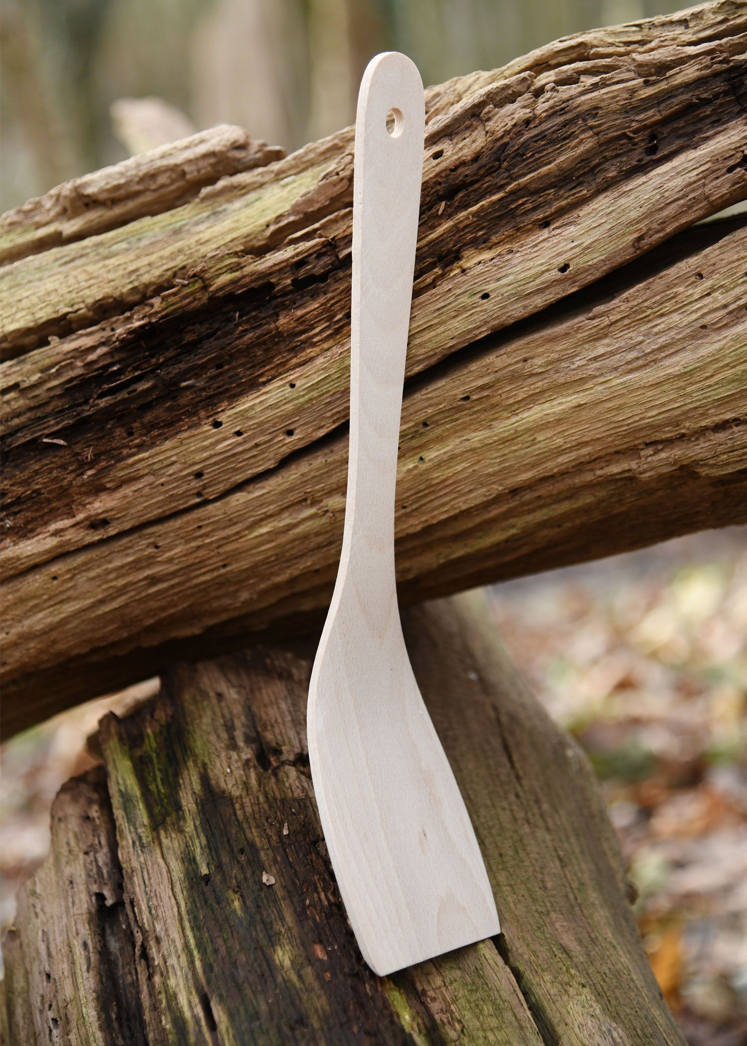 Pfannenwender aus Buchenholz, gebogen, ca. 30 x 7 cm