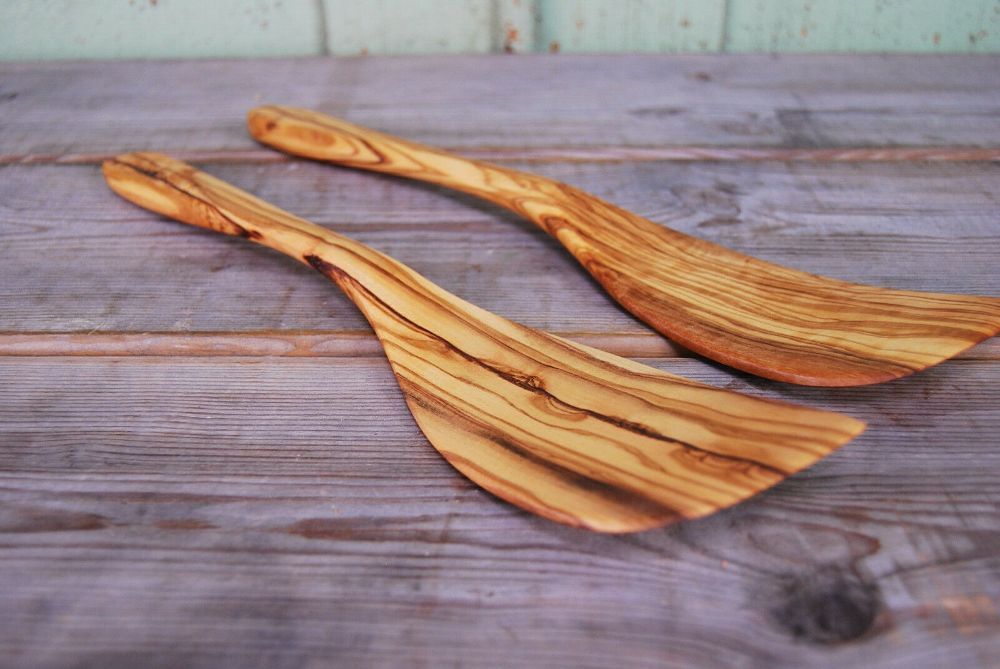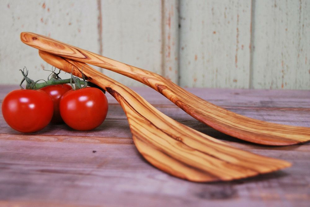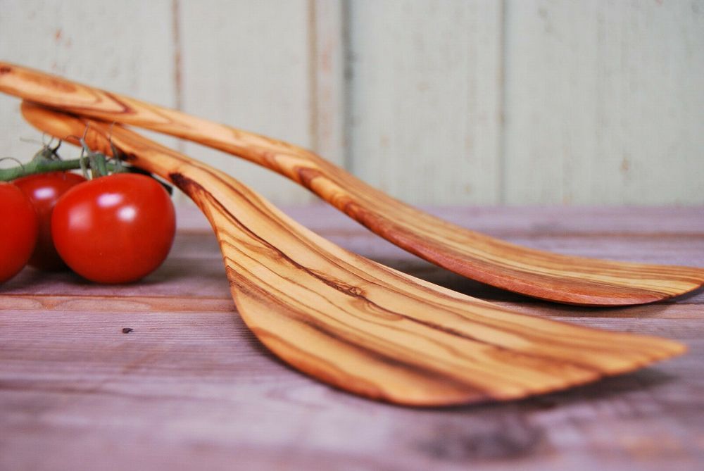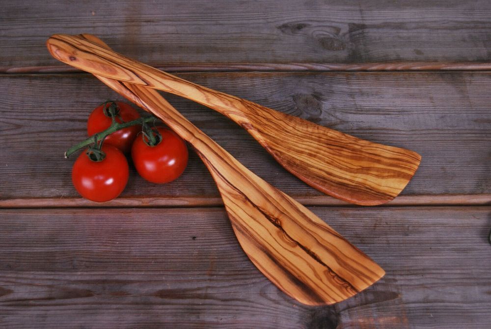 Pfannenwender extra breit aus Olivenholz, hitzebeständig, für Linkshänder 30cm