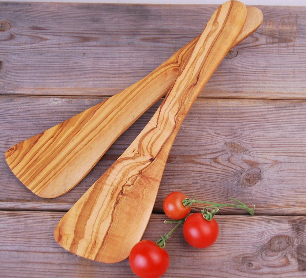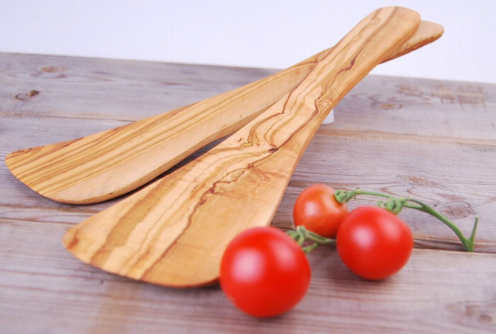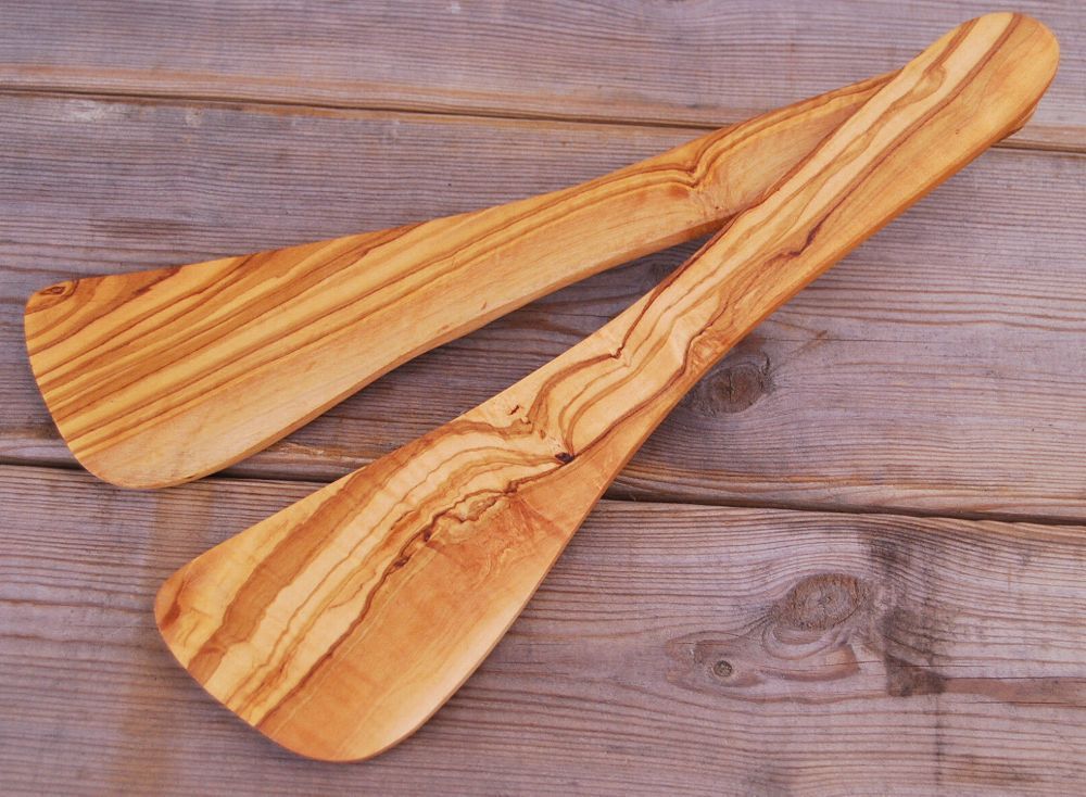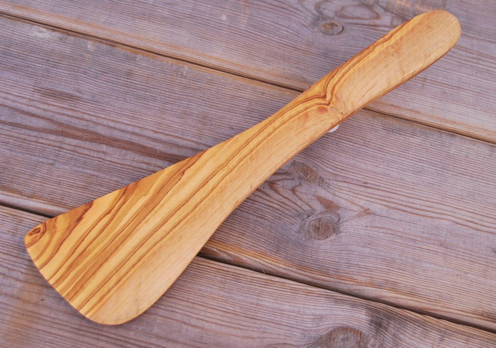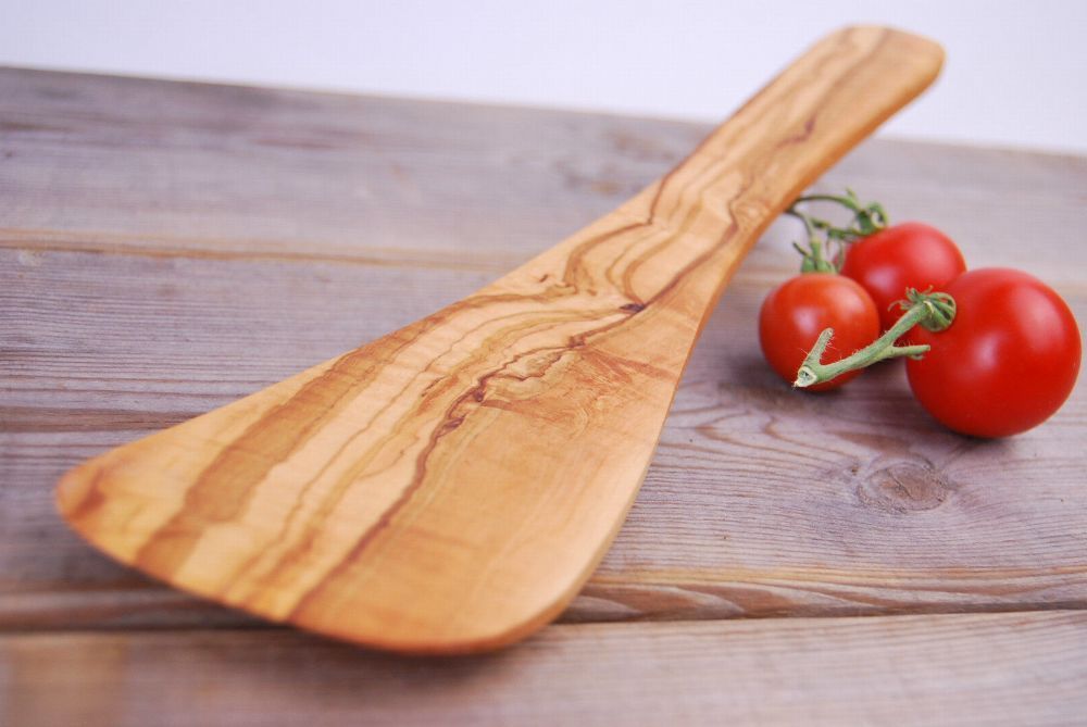 Pfannenwender gebogen aus Olivenholz, hitzebeständig, für Rechtshänder ca. 30cm