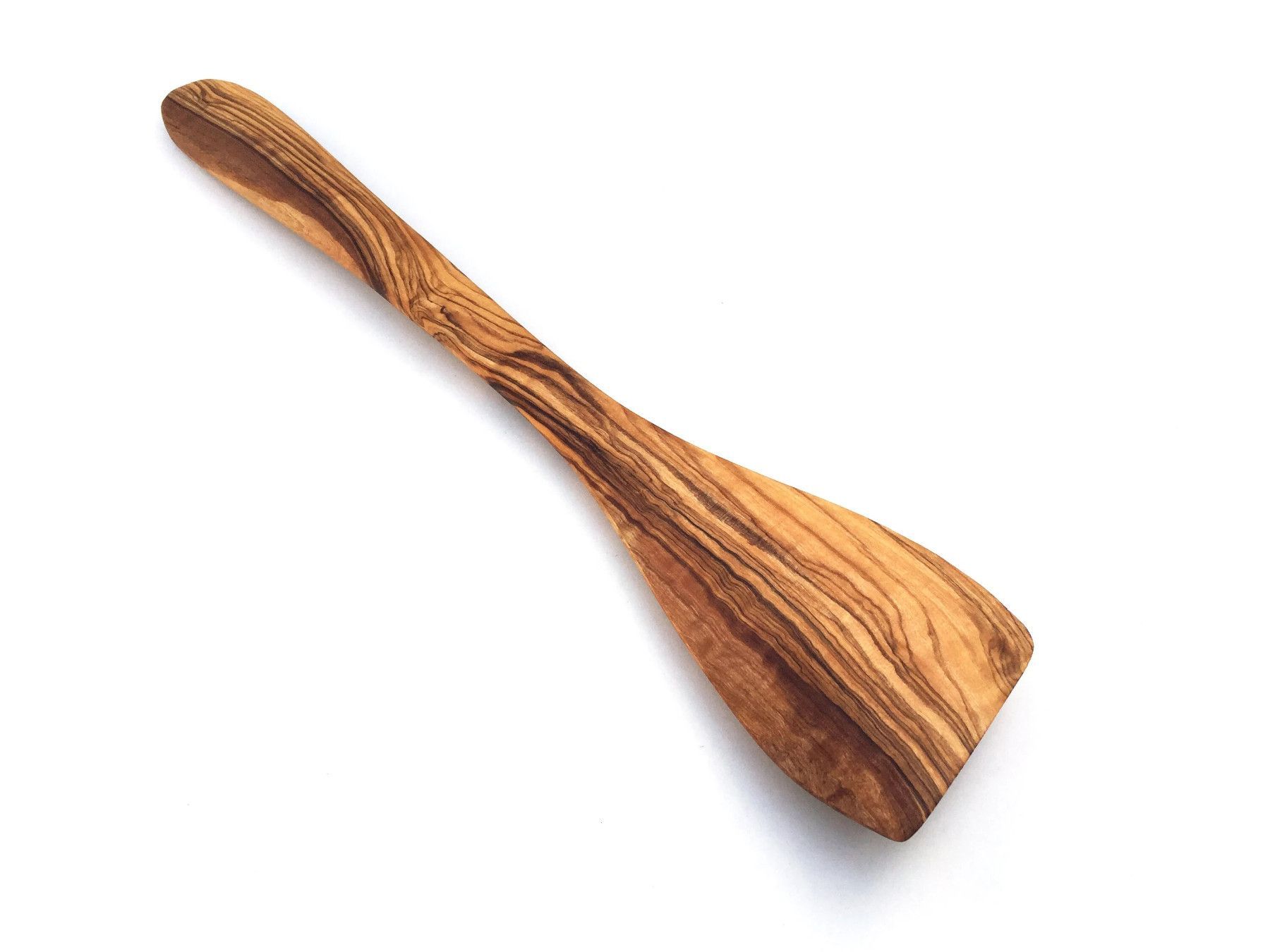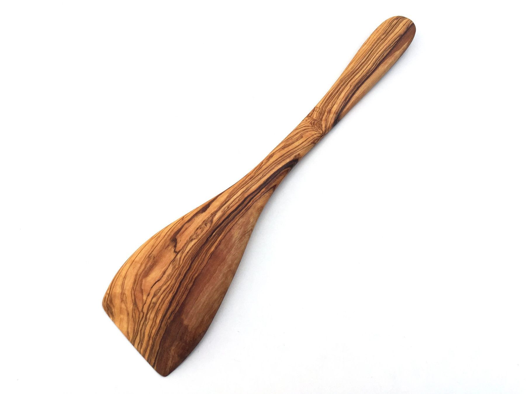 Pfannenwender schräg Länge 25/30/35 cm wählbar, gebogen, handgemacht aus Olivenholz