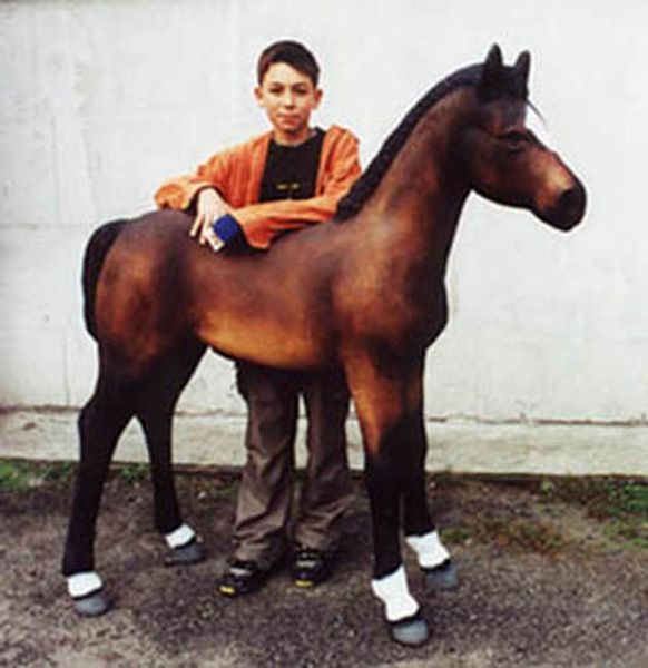 Pferd Fohlen braun mit Bodenbefestigung (Metalllaschen) lebensgroß 147cm für draußen
