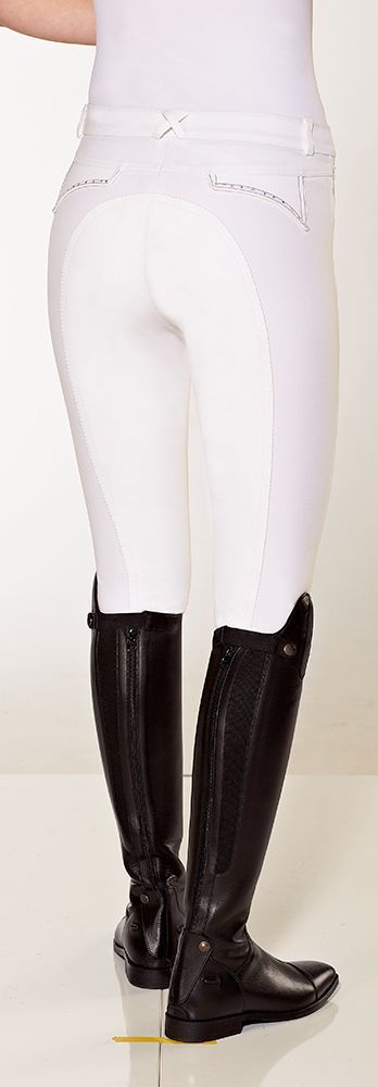 PFIFF Damen Vollbesatz Reithose BIRTHE PF 101991 Modische Reithose mit waschbarem Vollbesatz, vorderen Einschubtaschen (bei Farbe weiß nur Taschenapplikation) einer Münztasche mit peppigem Sticklogo, elastischem Beinabschluss hinteren Taschen-Applikationen mit Strassbesatz, waschbar bis 40 °C. M