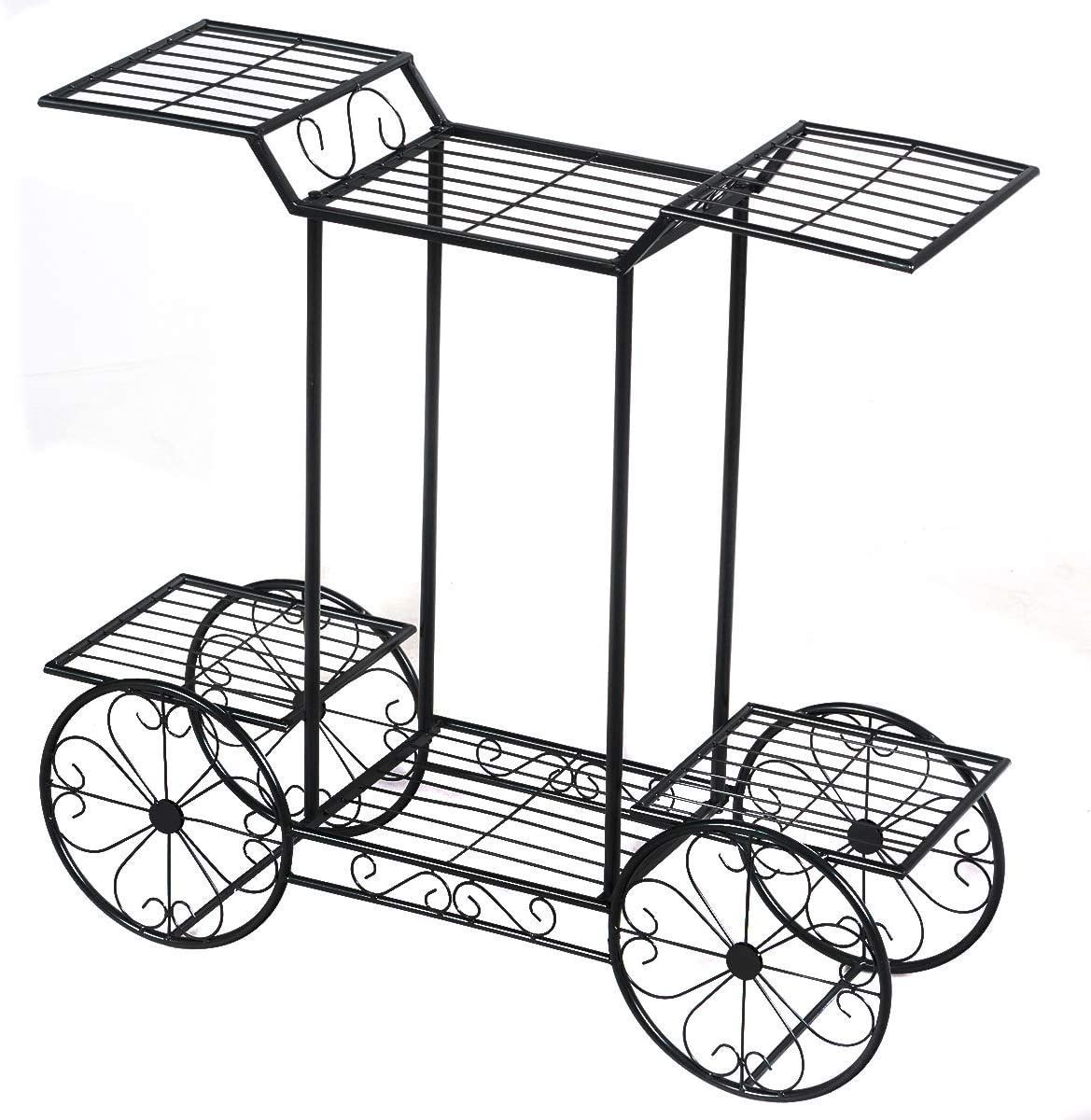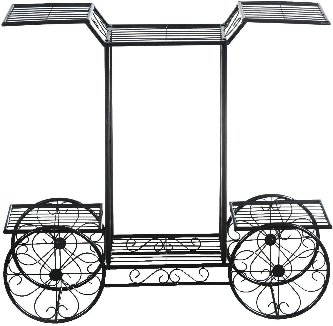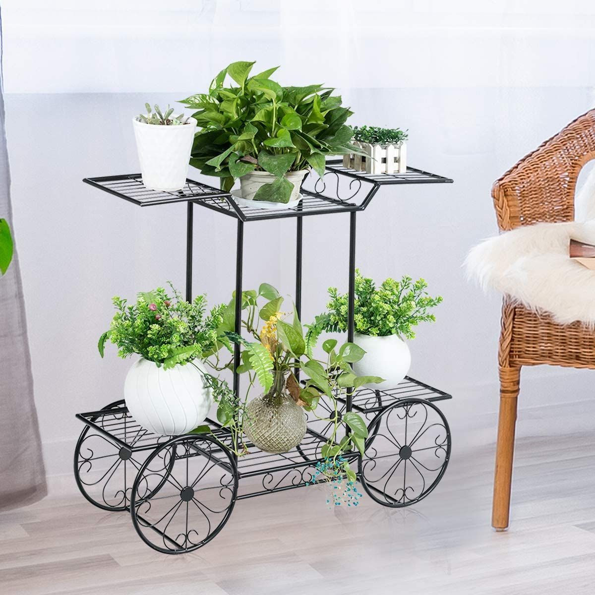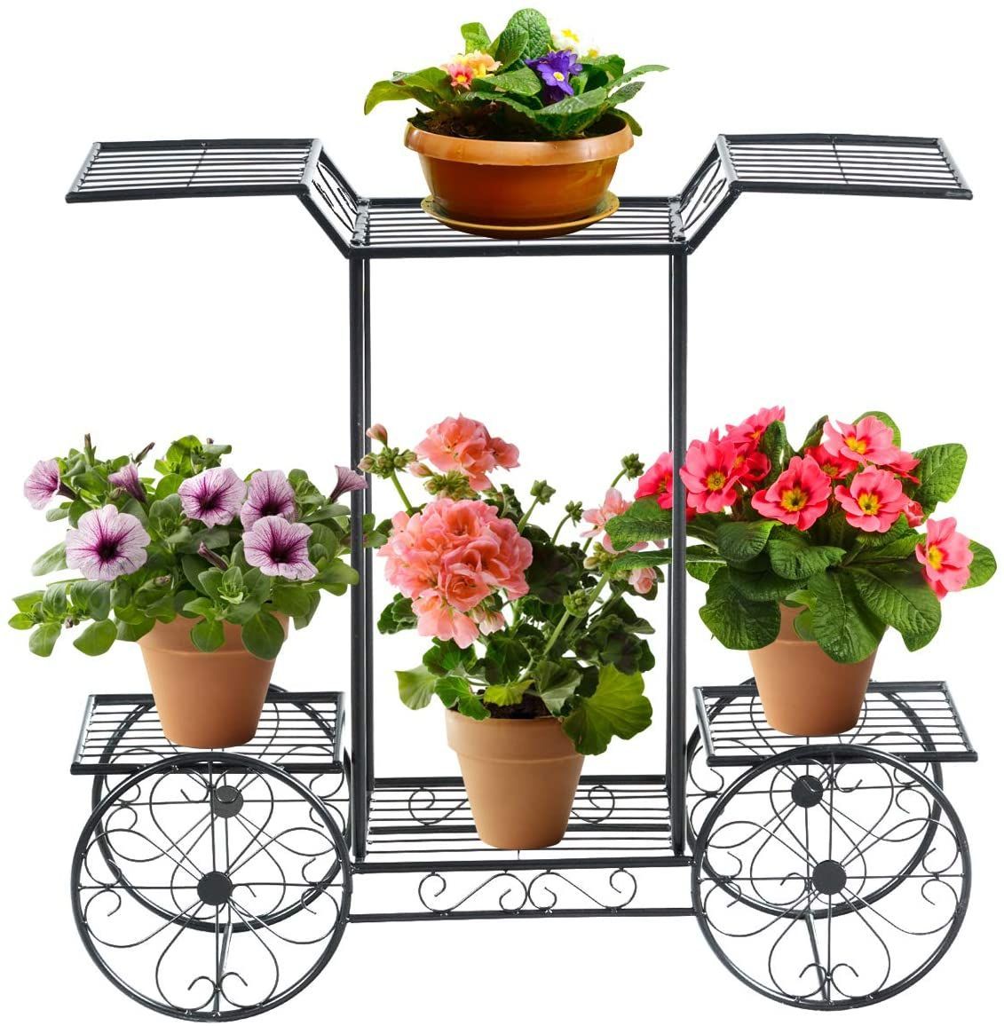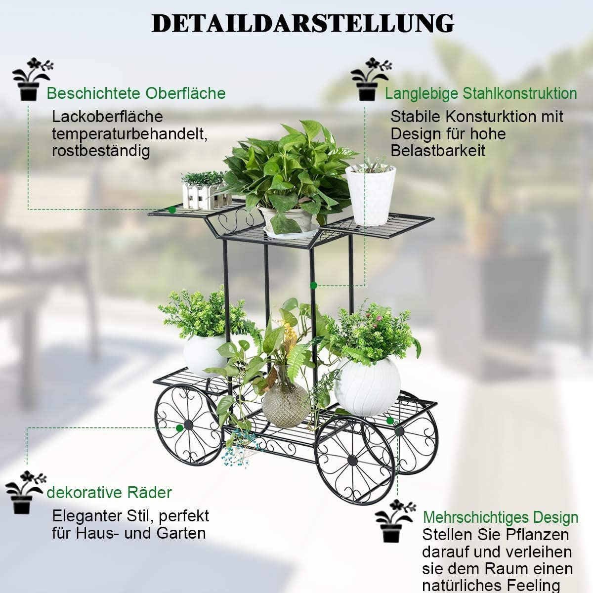 Pflanzenregal Metall, Blumenregal schwarz, Blumenständer mit 6 Ablagen Freistehender