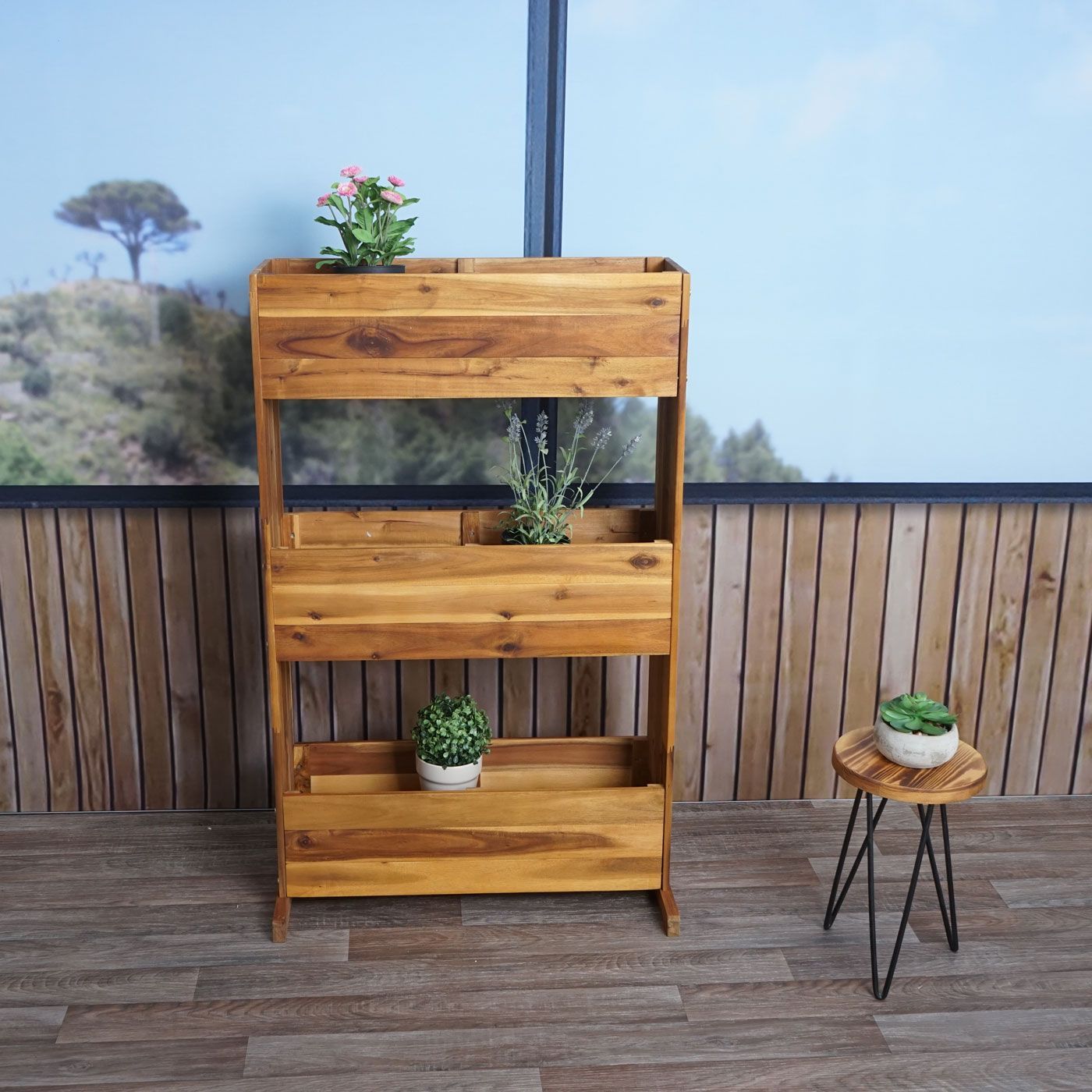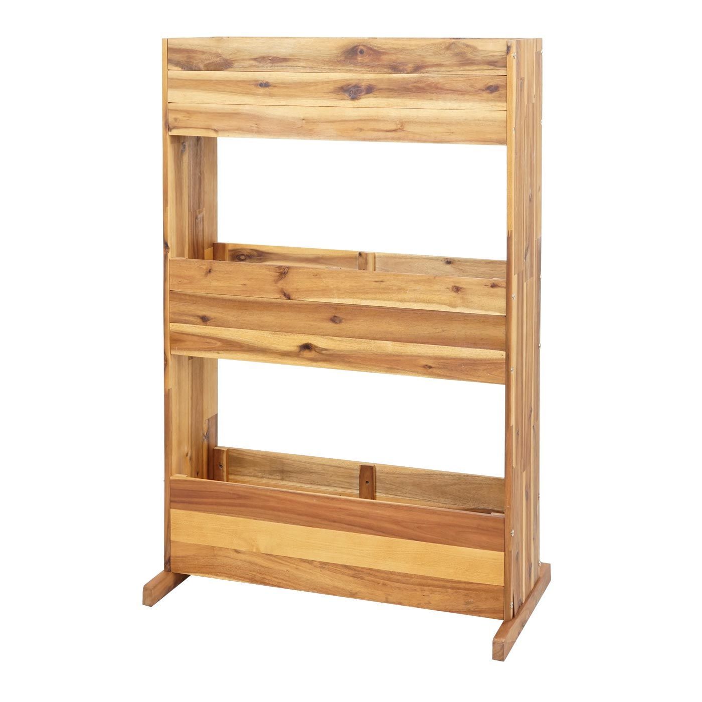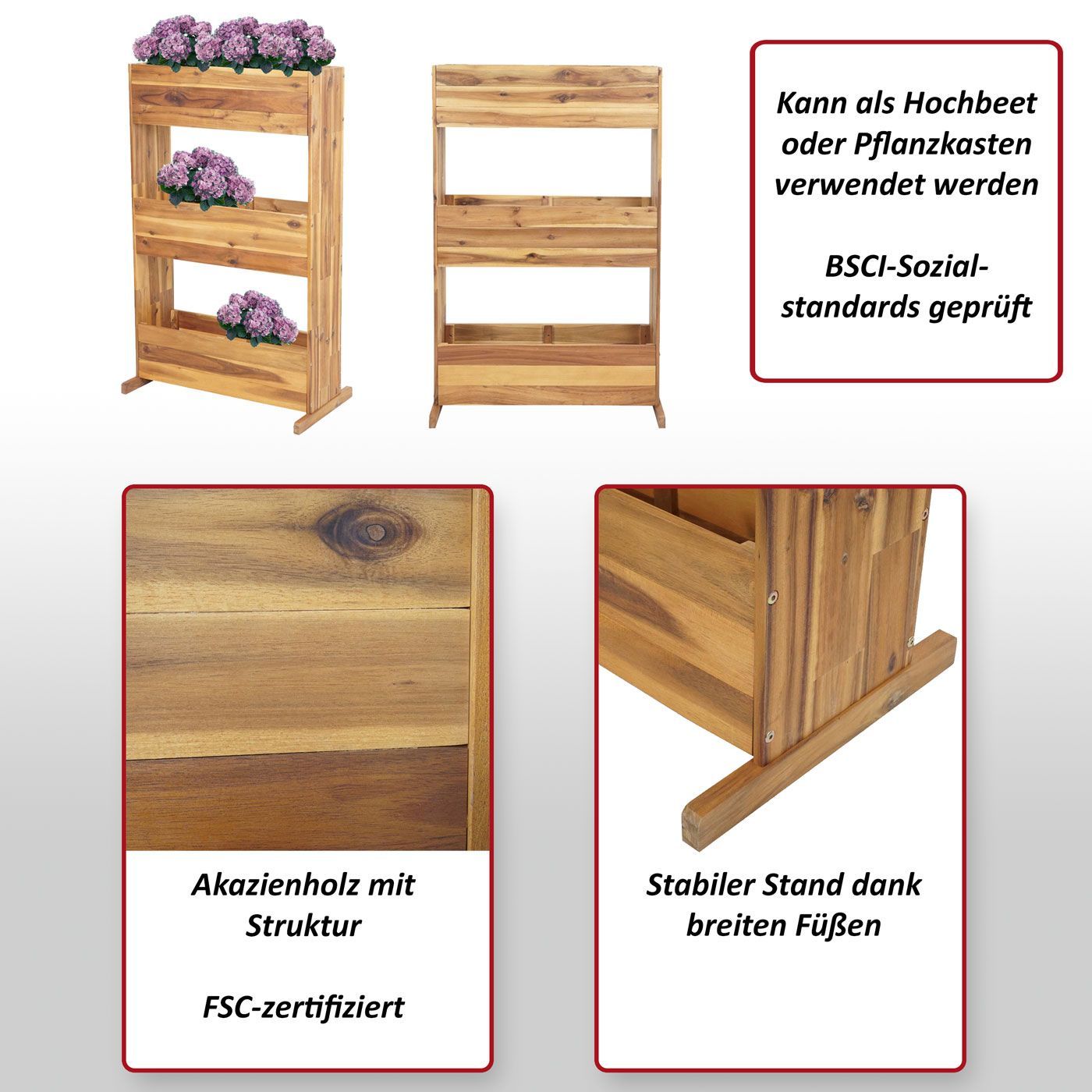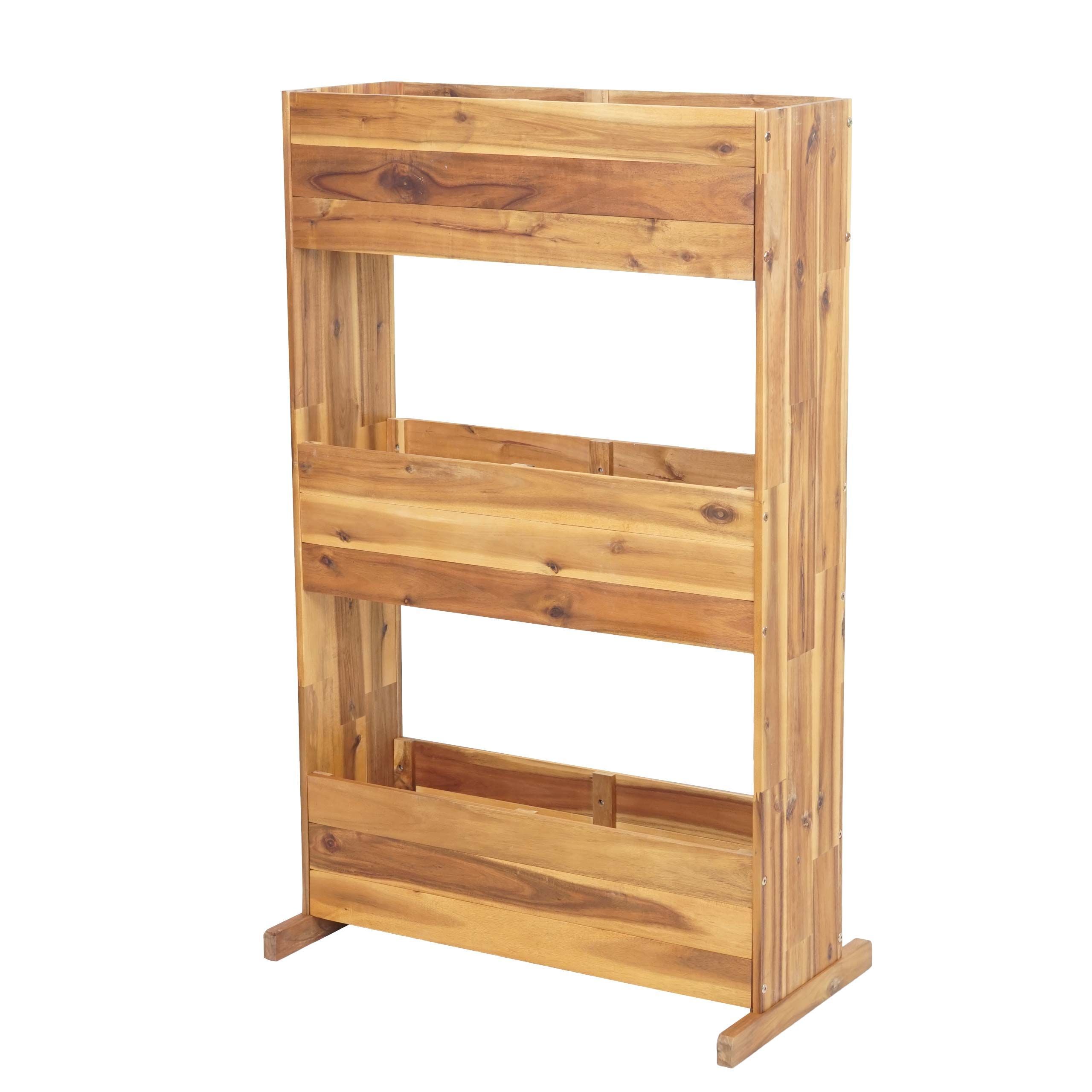Mendler Pflanzkastenregal HWC-L20, Pflanzkasten, Akazie Holz MVG-zertifiziert, 3 Reihen braun