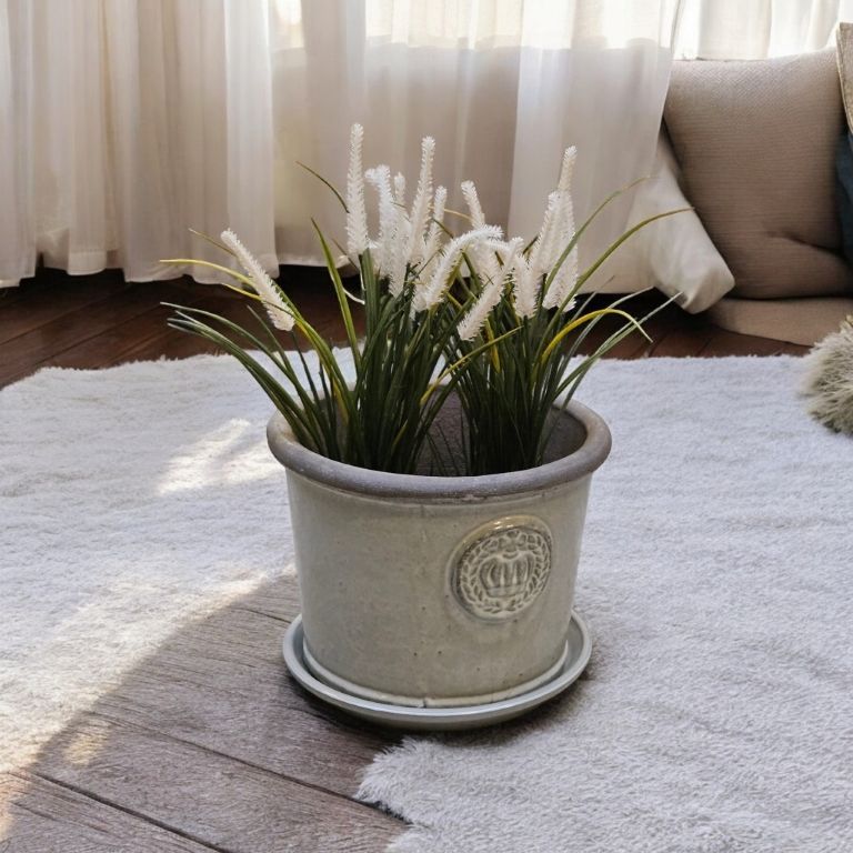 Pflanzteller Untersetzer für Pflanzgefäße 24cm Grau-Weiß Vogeltränke frostfest