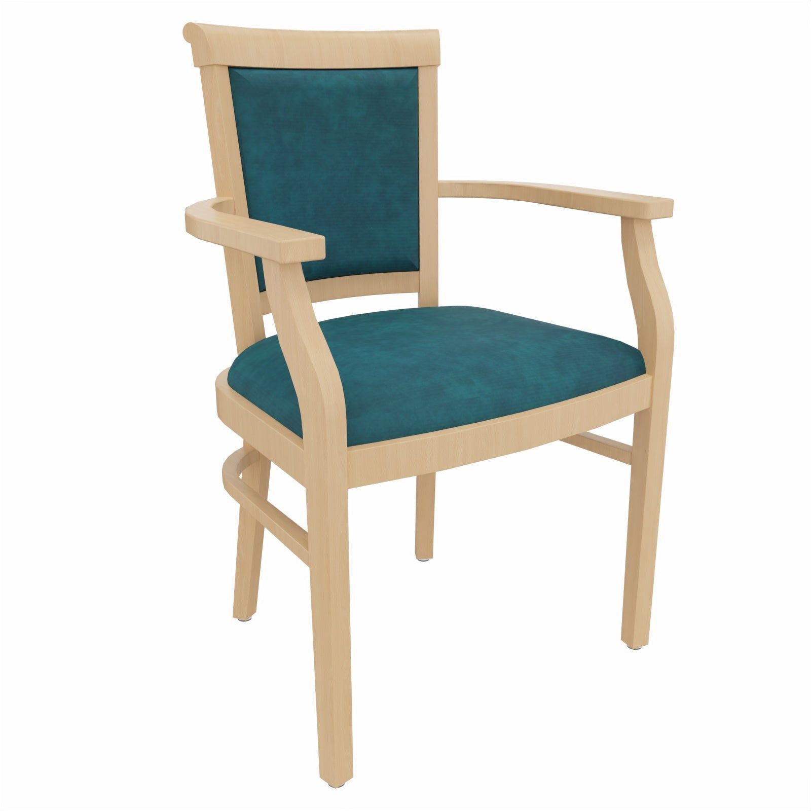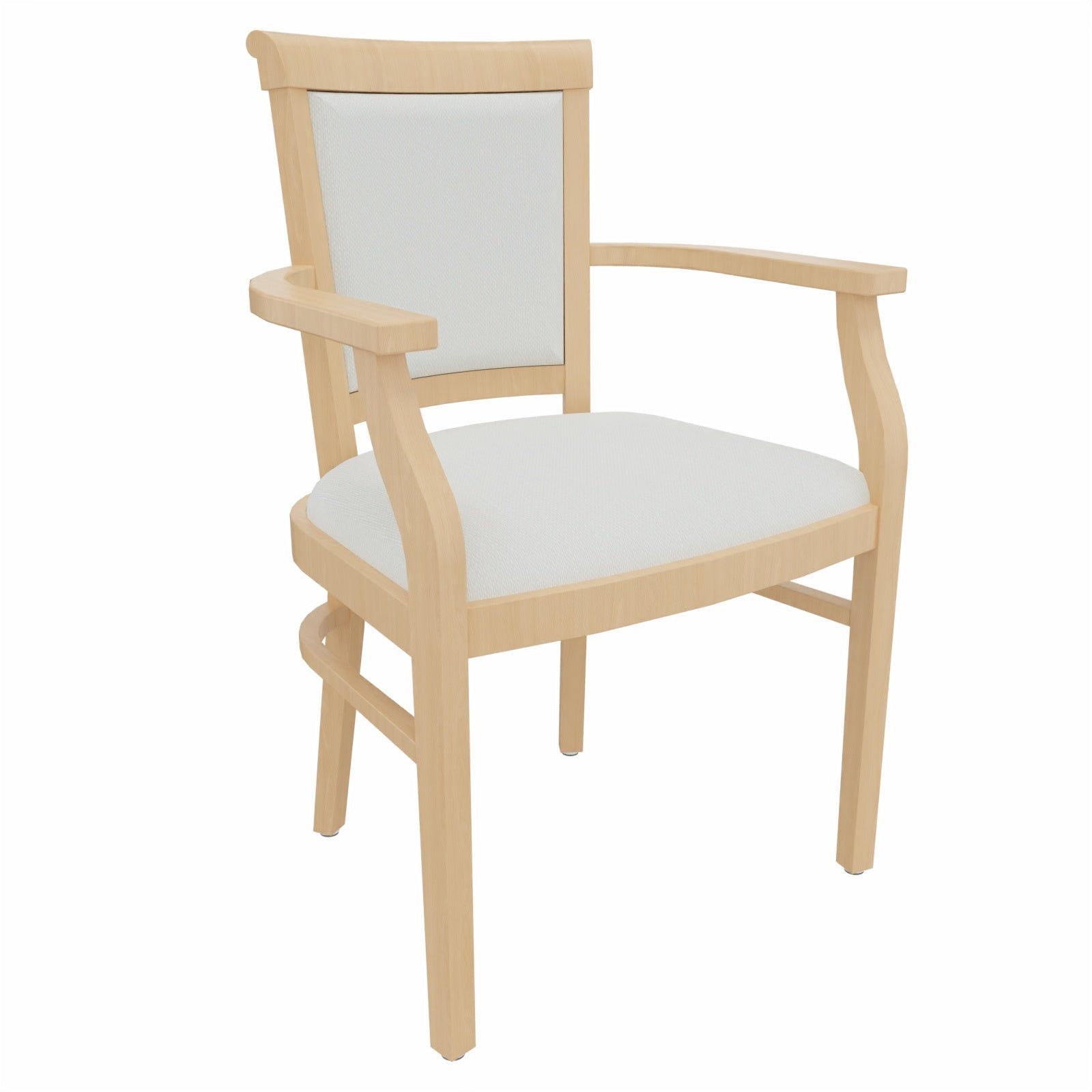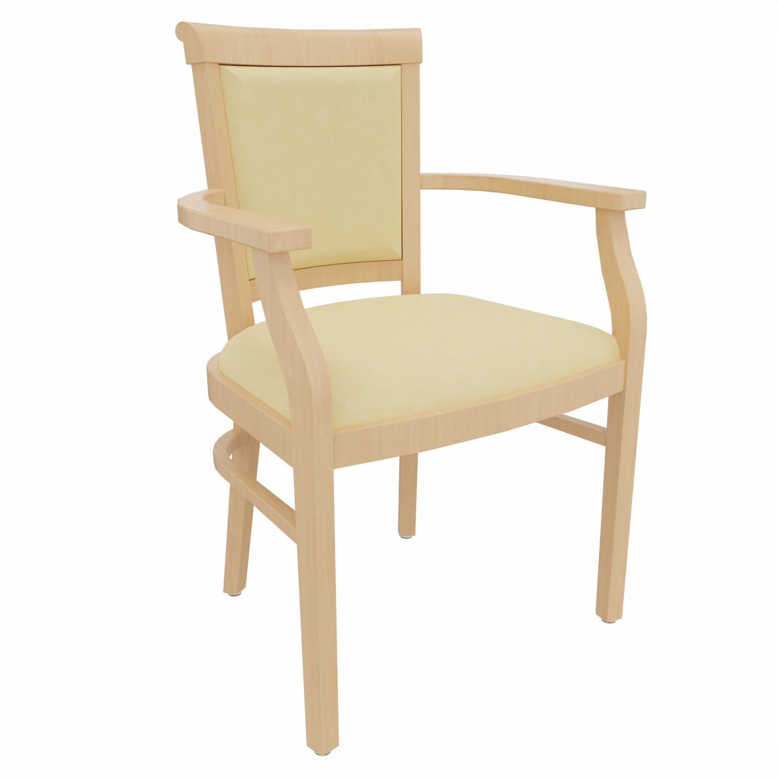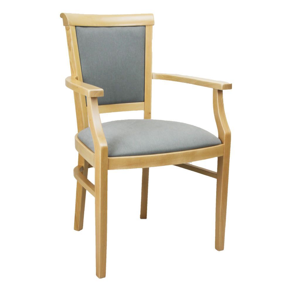 Stuhl „Ariane“ mit Armlehnen – elegant, stabil und alltagstauglich Der Stuhl „Ariane“ mit Armlehnen verbindet klassische Formgebung mit funktionalem Komfort – eine durchdachte Sitzlösung für den Pflegebereich, Wartezonen, Tagespflegen oder den privaten Wohnraum. Mit gepolsterter Sitzfläche, stabilen Armlehnen und klar lackiertem Massivholzgestell aus Buche erfüllt dieser Pflegestuhl höchste Anforderungen an Komfort, Hygiene und Langlebigkeit. Die ergonomische Sitzhöhe und