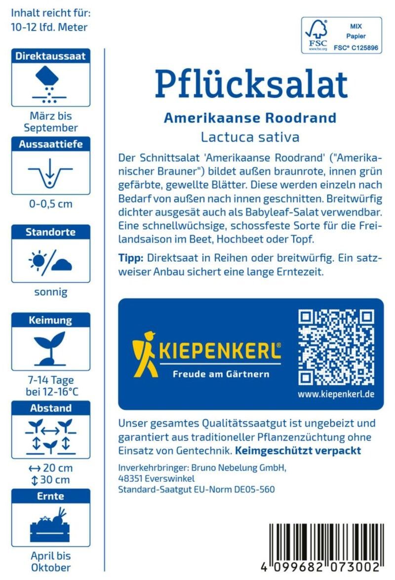 Kiepenkerl Pflücksalat Amerikaanse Roodrand, Amerik Brauner Schnittsalat für gesamte