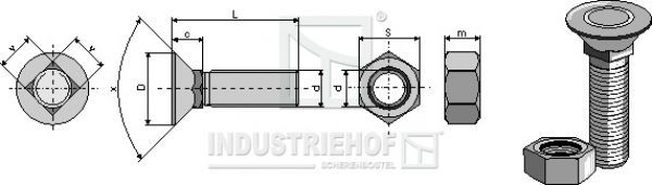 Pflugschraube DIN 608 M10 X 1,5 X 80 und Sechskantmutter 108088 Pflugschraube DIN 608 M10 X 1,5 X 80 und Sechskantmutter Technische Datem: Bestellnr.: 108088 Gewicht: 0.500 kg Güte: 8.8 Gewinde: M10 x 1,5 D: Ø 19 L: 80 M: 8 S: 17 C: 8 V: 10 Mutter nach DIN 934 X 90° Verpackungseinheit: 10