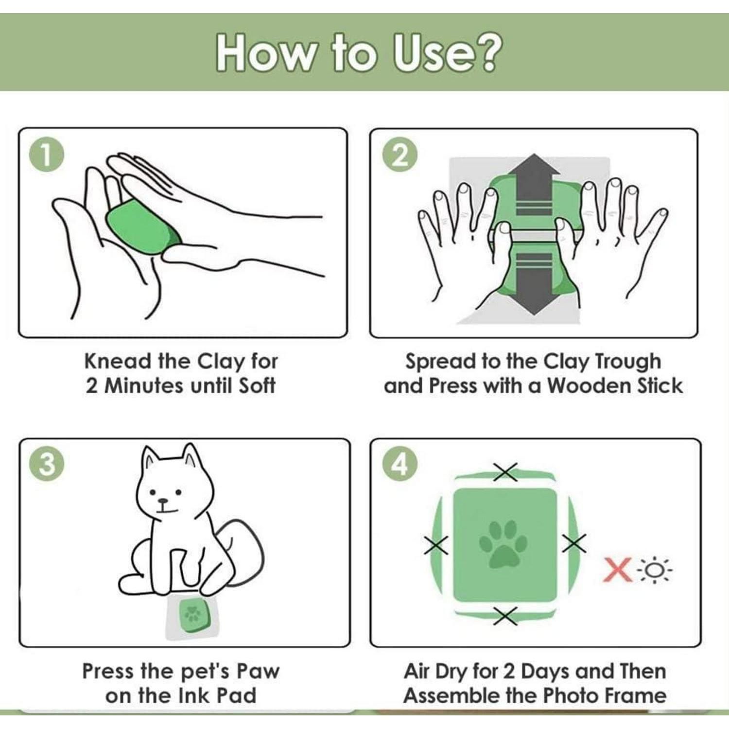 Pfotenabdruck Bilderrahmen Set Gips Holz Andenken Wanddekoration Haustier Weiß