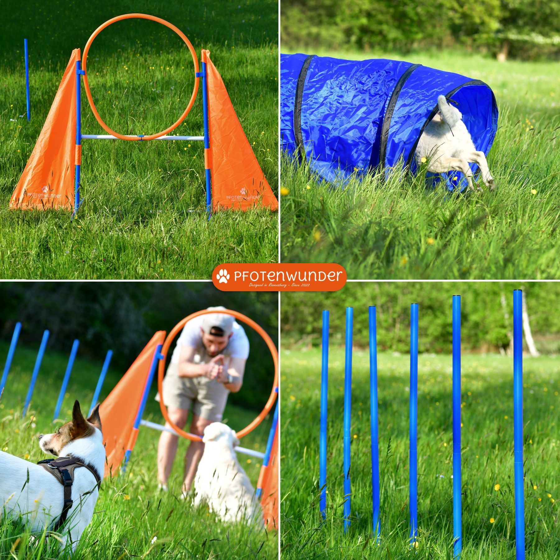 PFOTENWUNDER® Agility Medium-Set Hunde groß, 21 Min. Hundeschule inkl.6 Slalomstangen