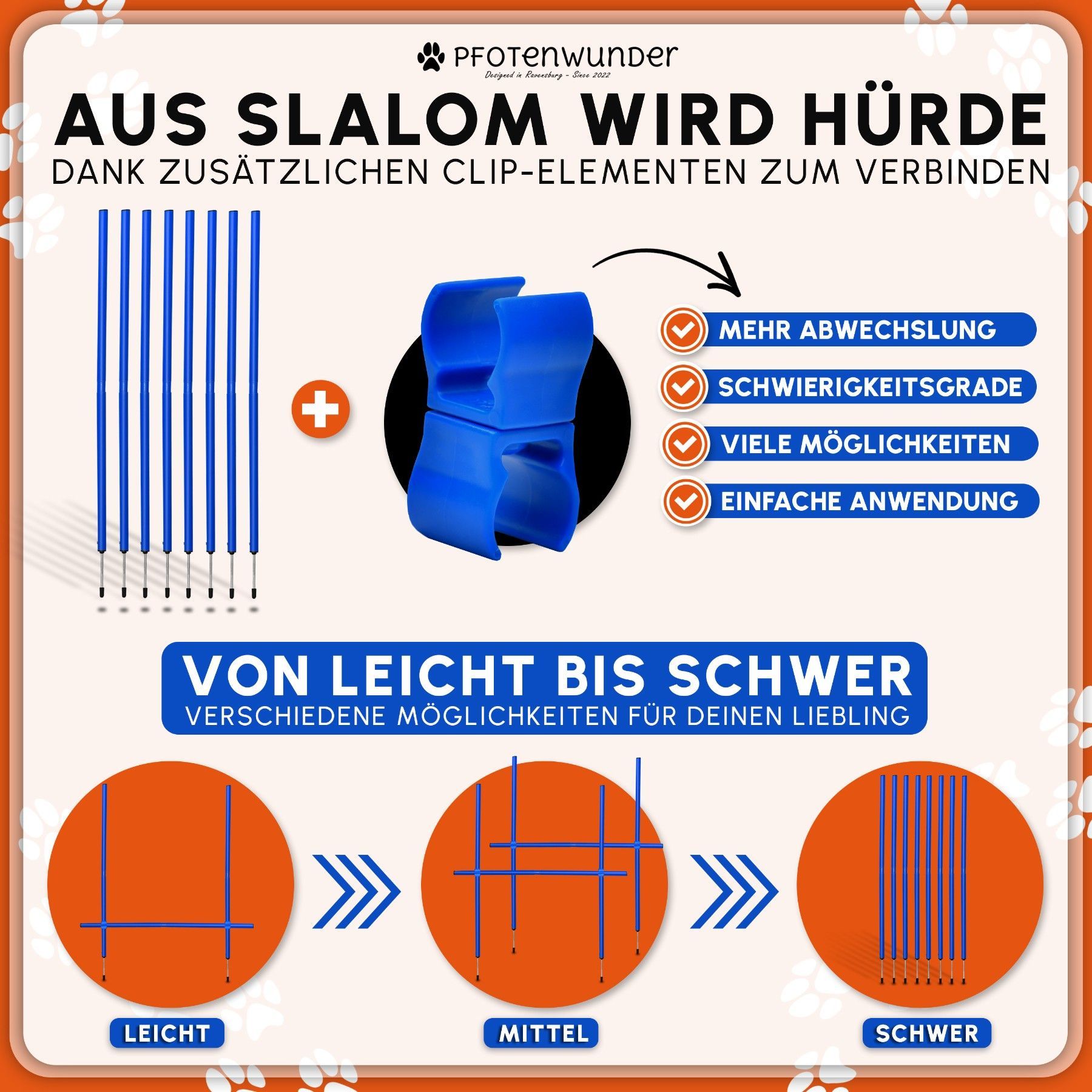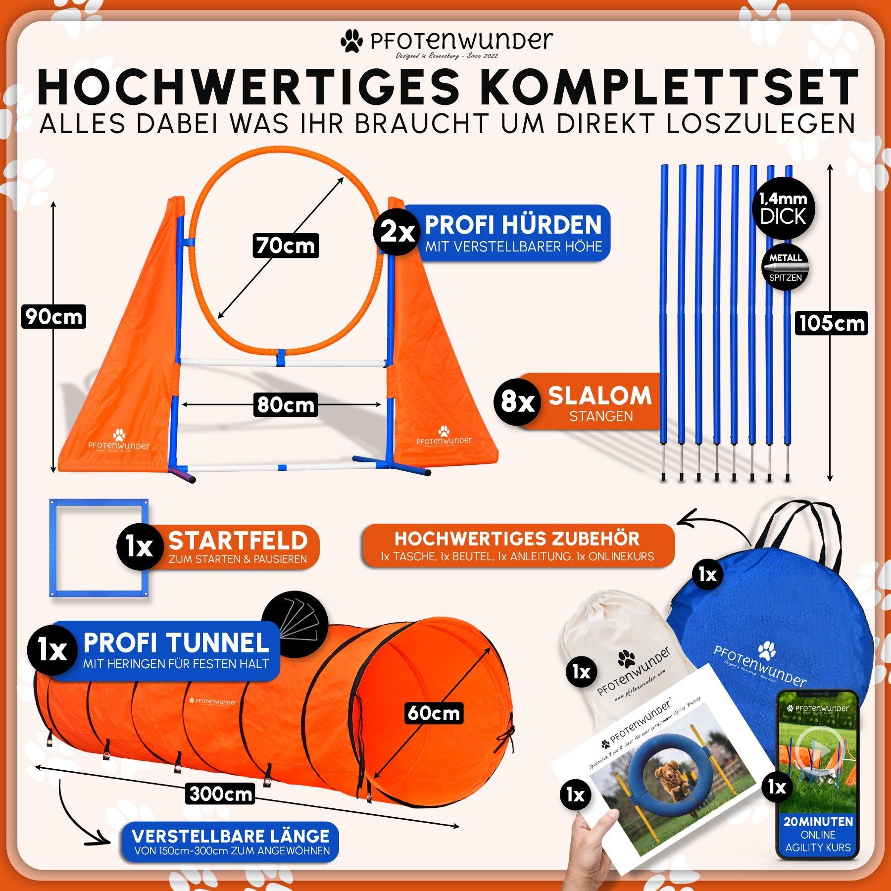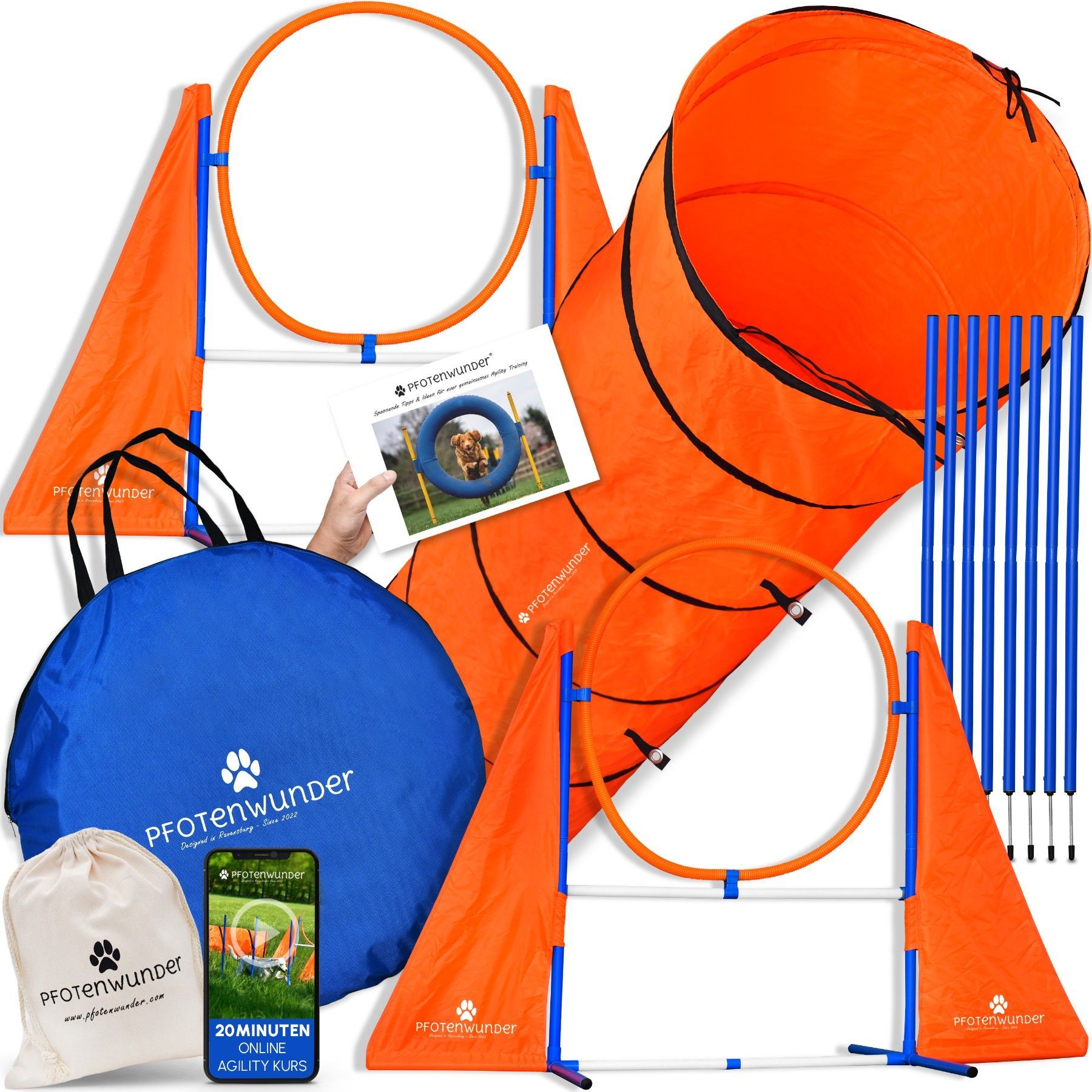 PFOTENWUNDER® XXL-Profi-Agility Set Hunde Groß + 3 Meter-Tunnel + 21 Min. Hundeschule