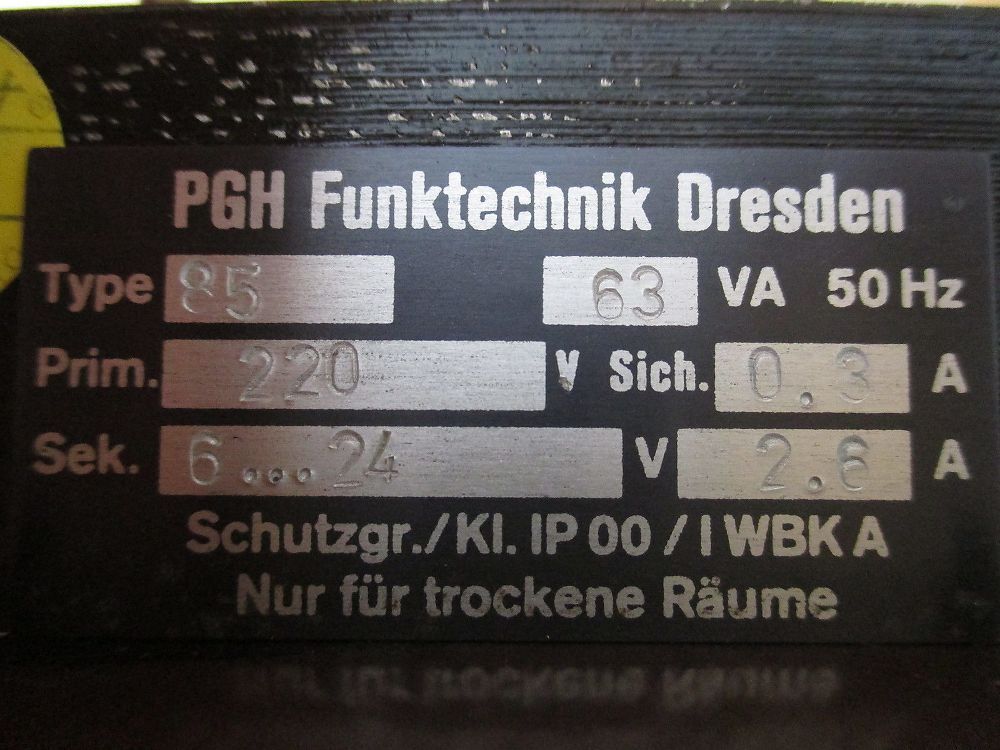 PGH Transformator Type 85 Trafo pri. 220 V sek. 6 - 24 V 63 VA T9/825