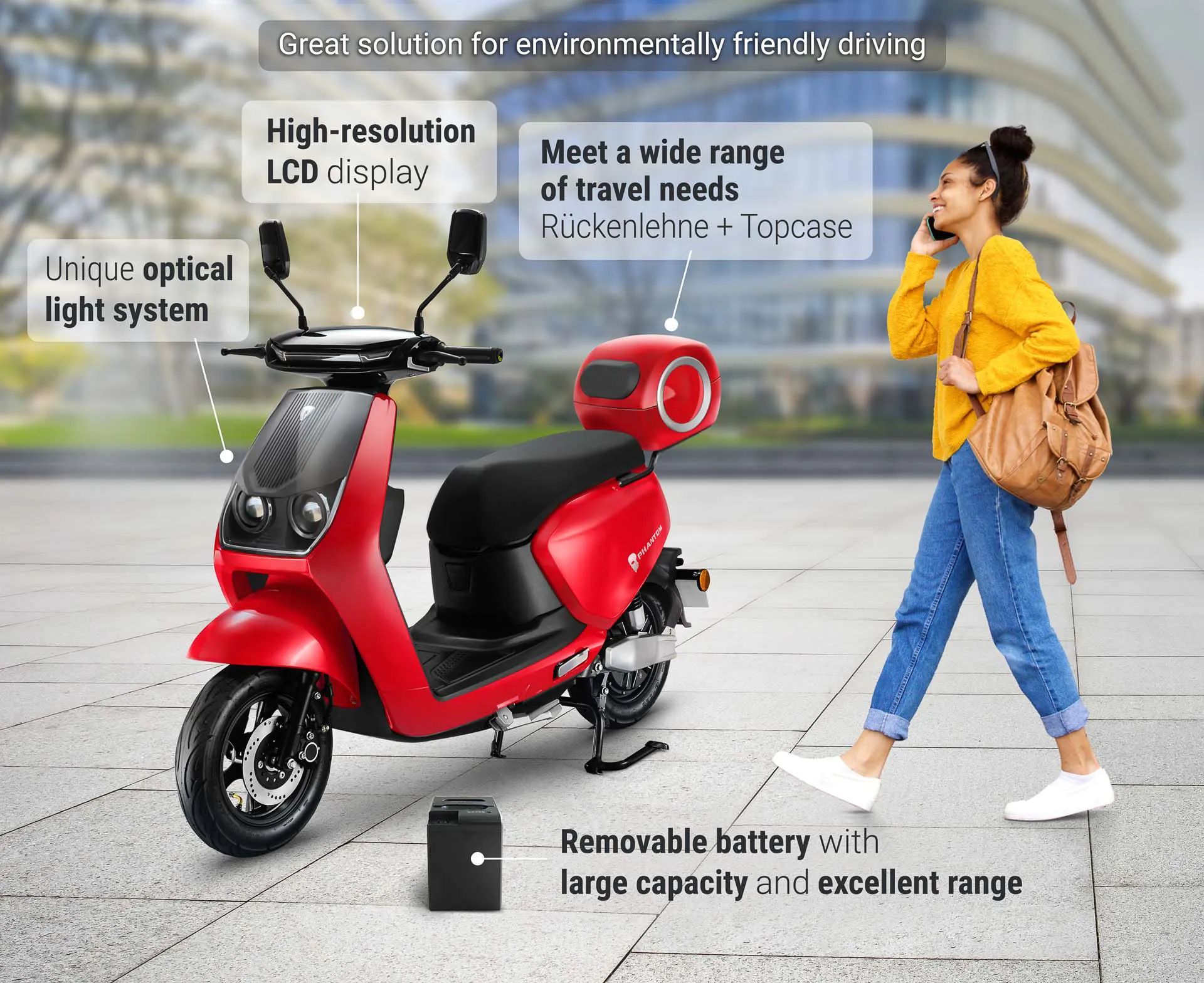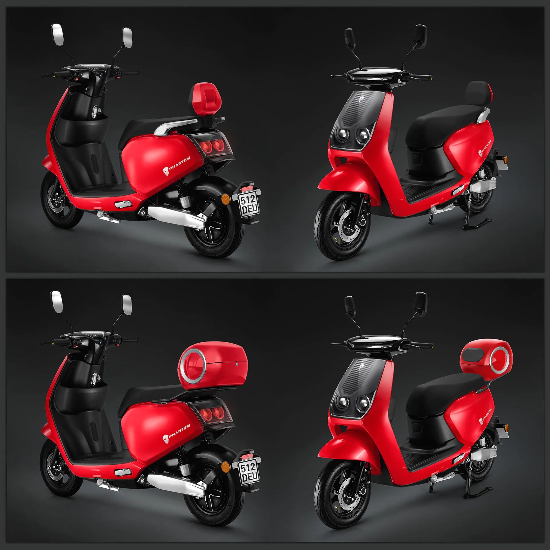 Phantom | E-Roller | Lithium-Akku | 1500 Watt | 60km | 42km/ h | Rot Elektro Roller |
