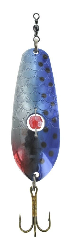 Phantom-F Augenblinker 28g Farbe: Blau-Silber Dieser Blinker entwickelt durch sein Farbmuster, seine Form und sein “Auge“ für eine Reizwirkung der kein Räuber widerstehen kann Sein eingesetztes, irisierendes Auge und die labilen, schwankenden Bewegungen ähneln einem kranken, leicht zu erbeutenden Fu