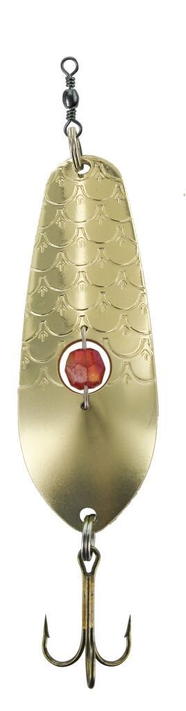 Phantom-F Augenblinker 28g Farbe: Gold Dieser Blinker entwickelt durch sein Farbmuster, seine Form und sein “Auge“ für eine Reizwirkung der kein Räuber widerstehen kann Sein eingesetztes, irisierendes Auge und die labilen, schwankenden Bewegungen ähneln einem kranken, leicht zu erbeutenden Futterfis