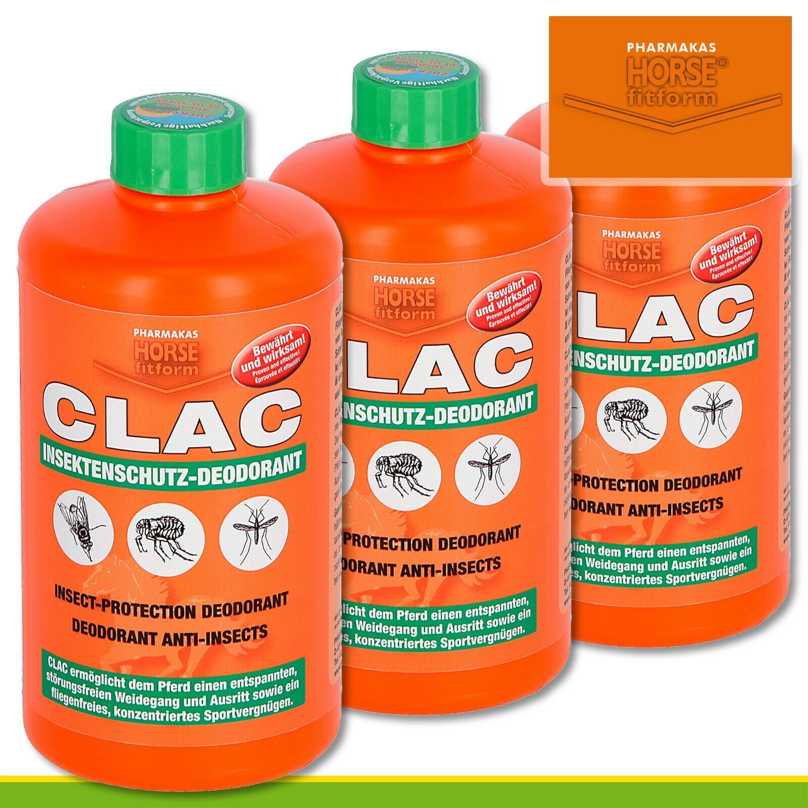Pharmakas Horse fitform 3x 500ml CLAC Fliegenschutz-Deodorant Flöhe Bremsen