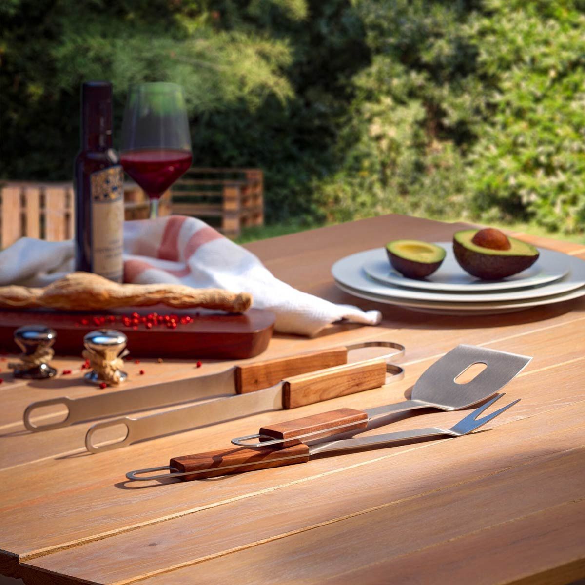 Philippi Philippi 353014 Grillbesteck BRICK mit Holzgriffen - Design Grill & BBQ Set Edelstahl