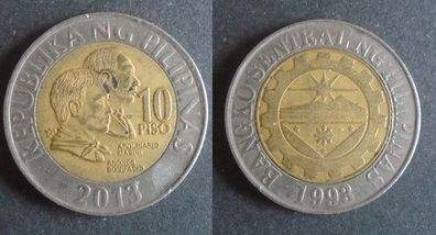 Philippinen 2 Piso 1990 Fehlprägung zusätzlich noch ein Palmenzeig links vom Stamm.