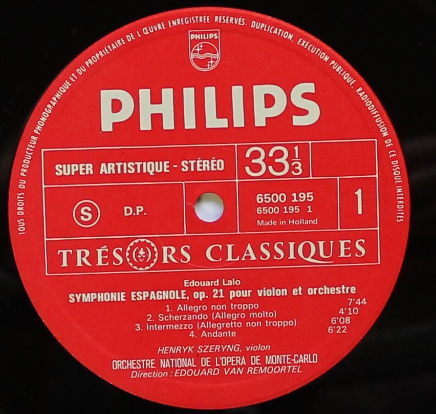 Philips 6500 195 - Édouard Lalo, Maurice Ravel, Henryk Szeryng, Orchestre Natio