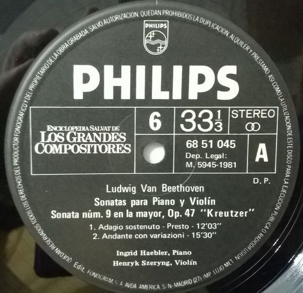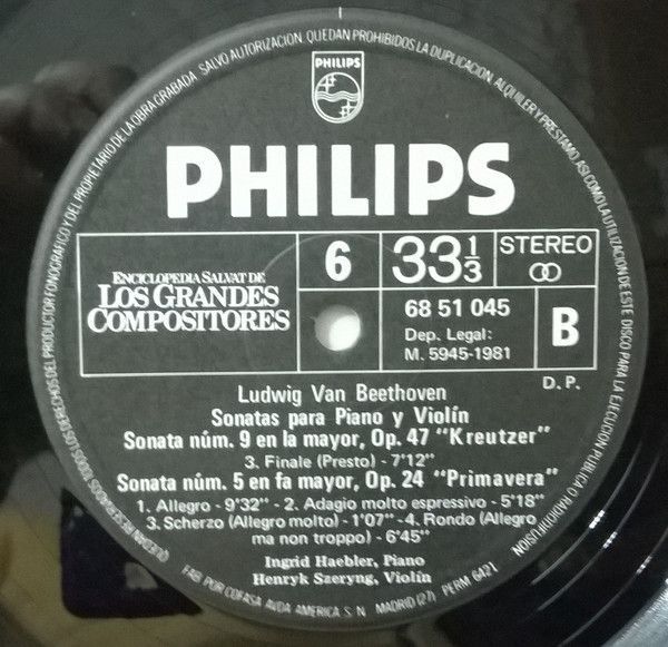 Philips 68 51 045 - Ludwig van Beethoven, Henryk Szeryng, Ingrid Haebler - Sonat