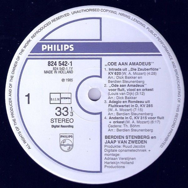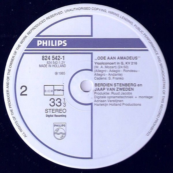 Philips 824 542-1 - Berdien Stenberg, Jaap van Zweden - Ode Aan Amadeus