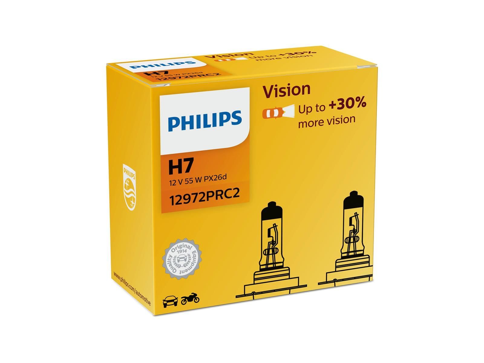 Philips Philips Hauptlampe H7, Sockel PX26d 12 V, 55 W, "Vision" + 30 %, 2er Set im Karton