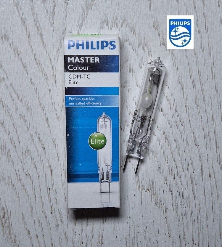 Philips Master Colour CDM-TC 35W 942 Elite Höchste Farbwiedergabe Lichtstrom: 2950 Lumen Farbtemperatur: 4200K Sockel: G8.5 Länge (mm) ca 80, Breite (mm) ca 15 - lange Lebensdauer - gute Farbwiedergabe Die Verpackung weist möglicherweise Verfärbungen auf; die Lampe selbst ist jedoch neu. Nur mit Vor