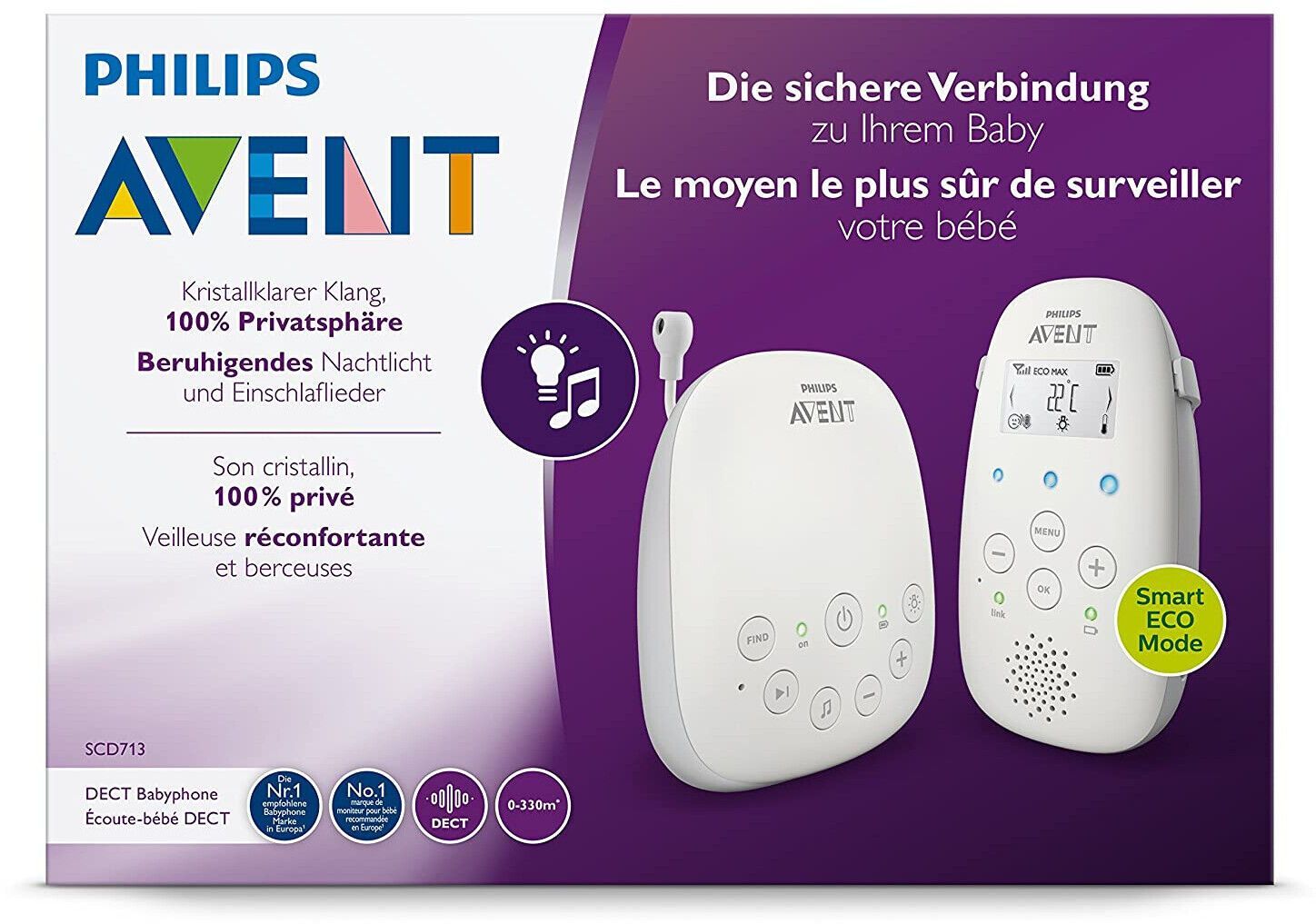 Philips SCD713/26 Avent Audio Babyphone DECT Eco-Mode Gegensprechfunktion weiß