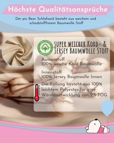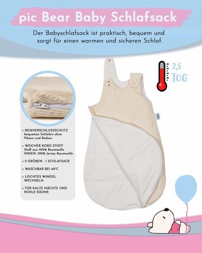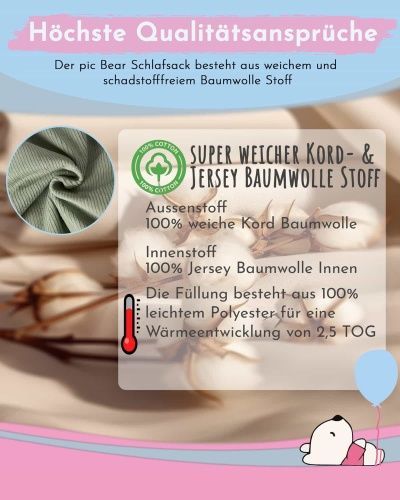 pic Bear Babyschlafsack mitwachsend & atmungsaktiv