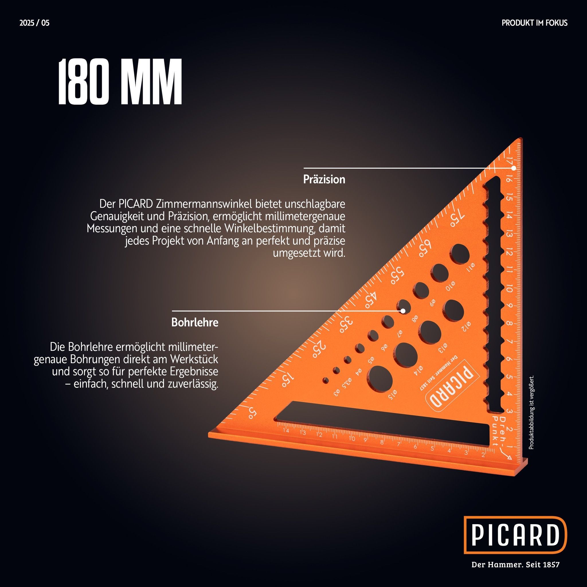 PICARD PICARD Zimmermannswinkel 180mm mit Bohrlehre