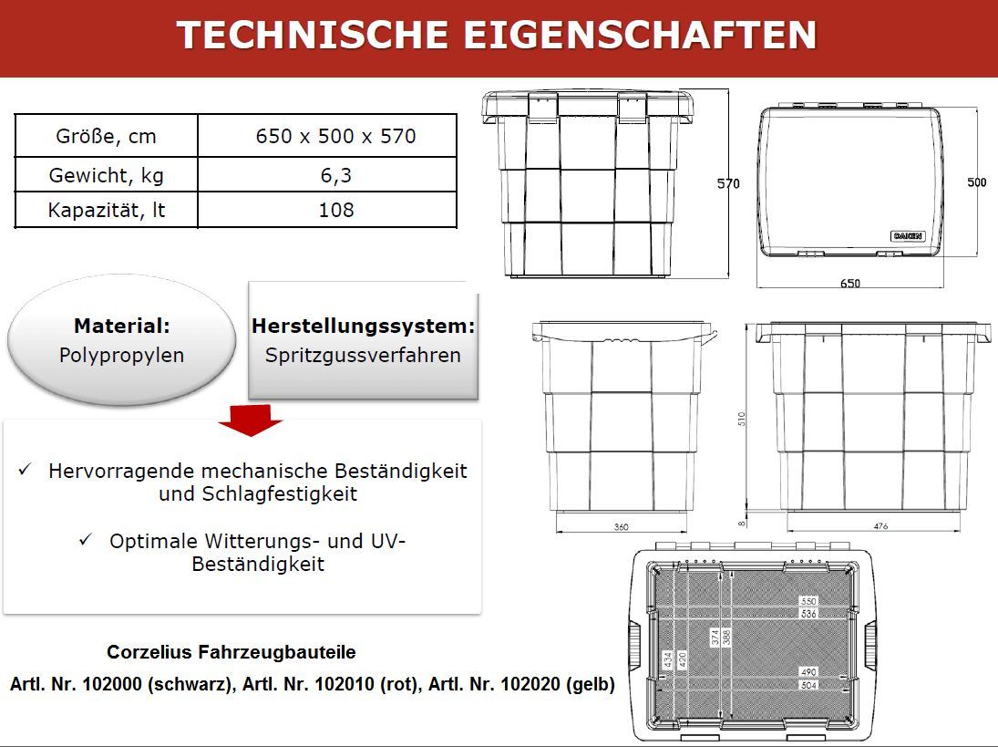 Pickup Staubox, Lagerbox, Transportbox, Streugutbehälter - 108 Ltr. Schwarz