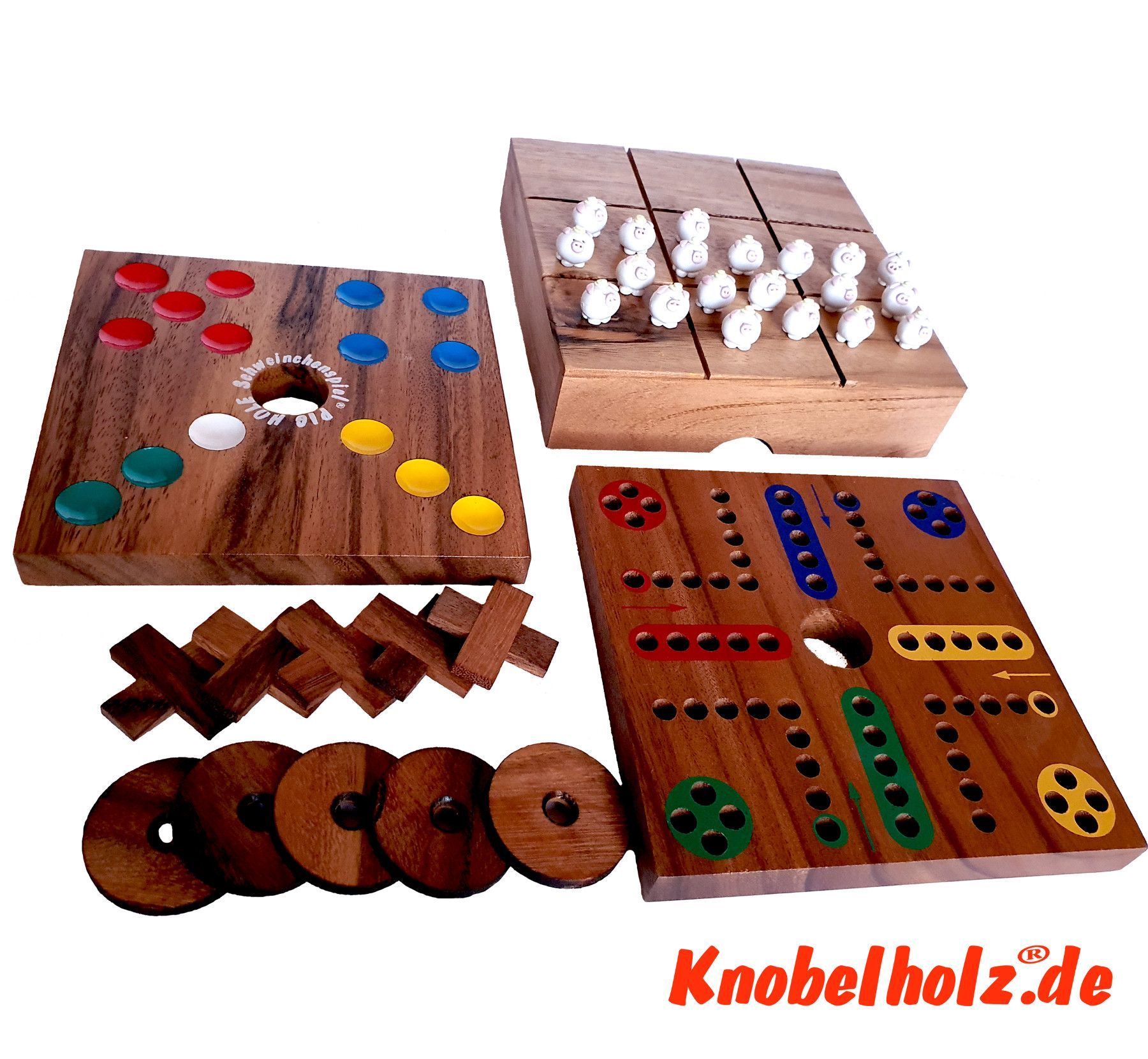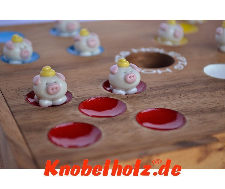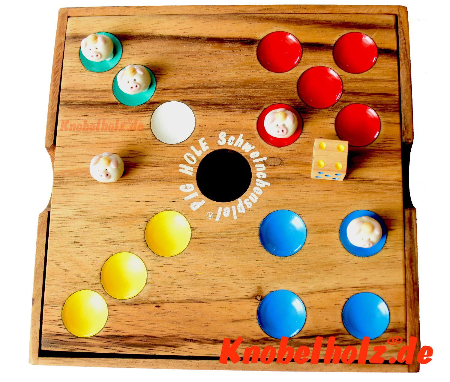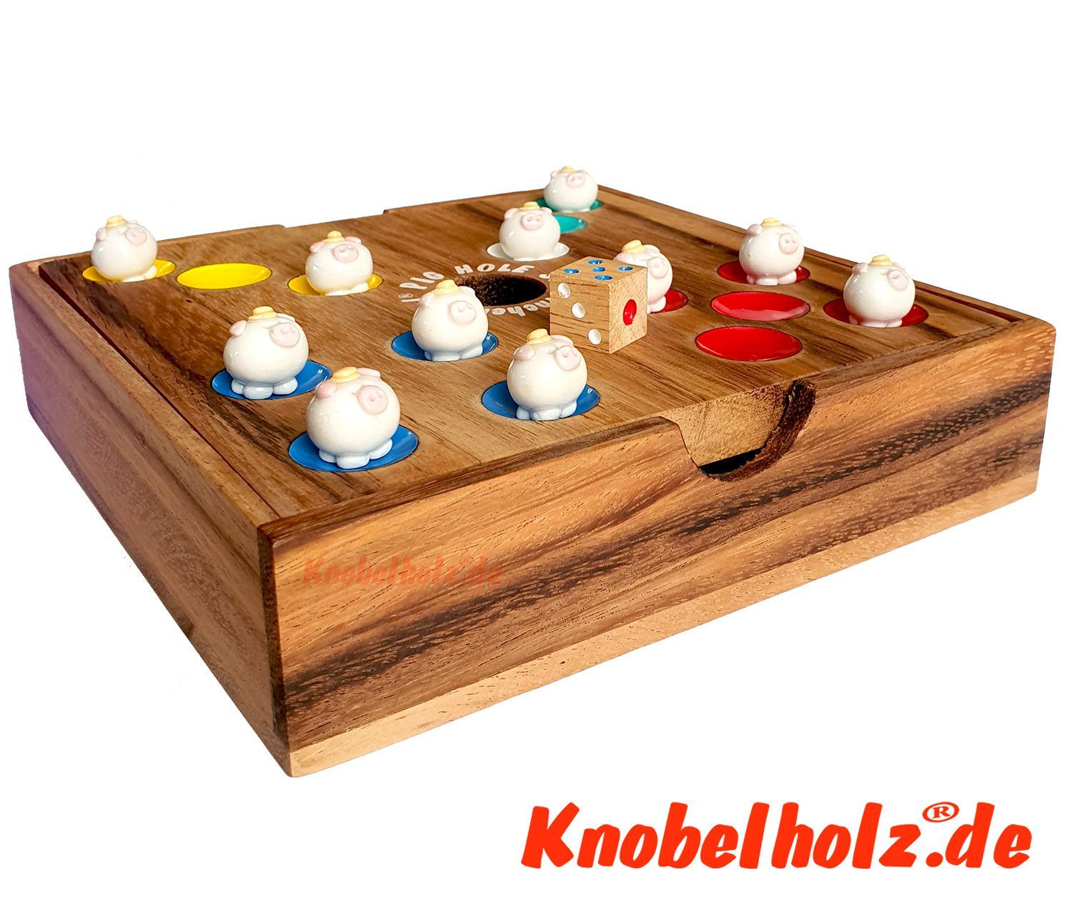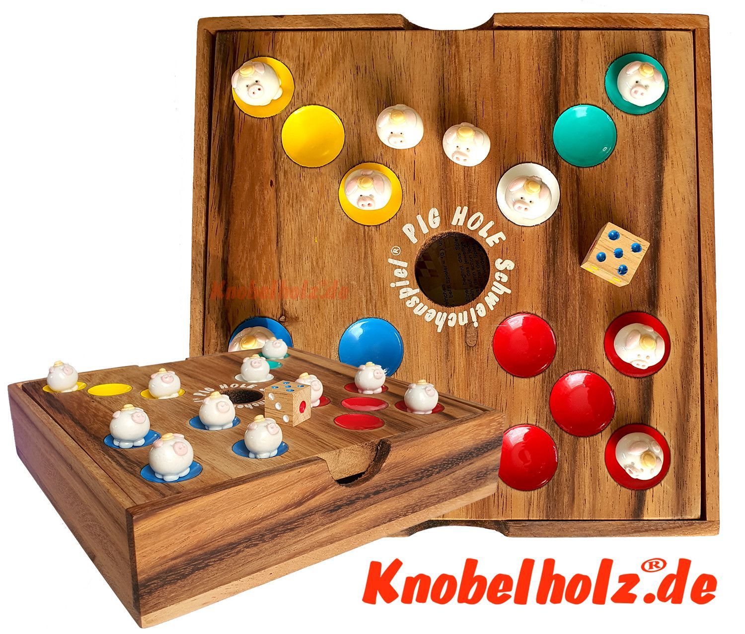 Pig Hole Schweinchenspiel® original Knobelholz Spiele Box mit Ludo + Tic Tac Toe