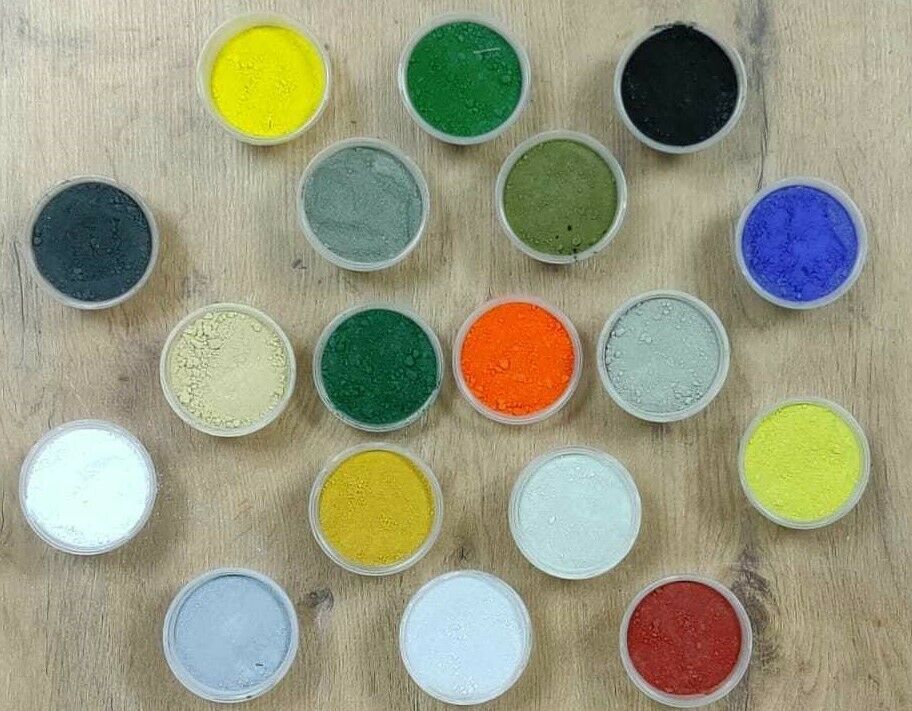 Farbstoff (Pigmentpulver) Farbpulver, Trockenfarbe, Farbpigment für innen und außen Hochwertige Farbpigmente : Goldgelb, Hellgelb, Verkehrsorange, Oxidrot, Braunrot, Korallenrot, Ultramarinblau, Grasgrün, Olivgrün, Resedagrün, Kupferbraun ,Reinweiß, Tiefschwarz. Zum Einfärben von Beton, Estrich, Anh... Mehr