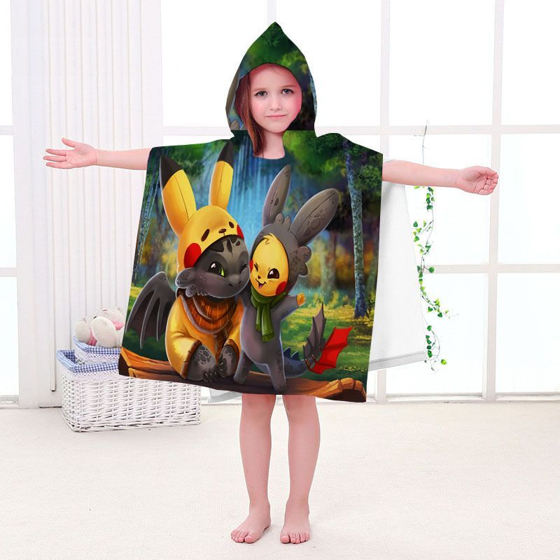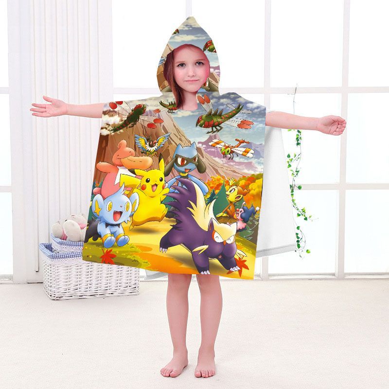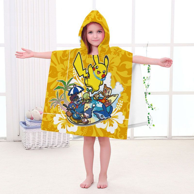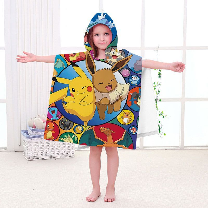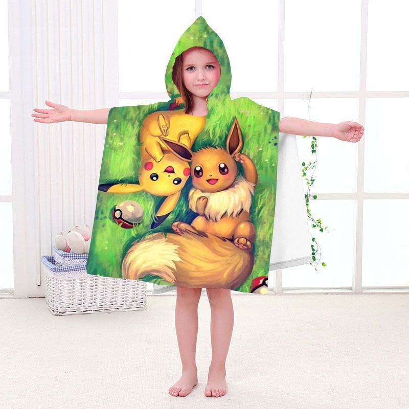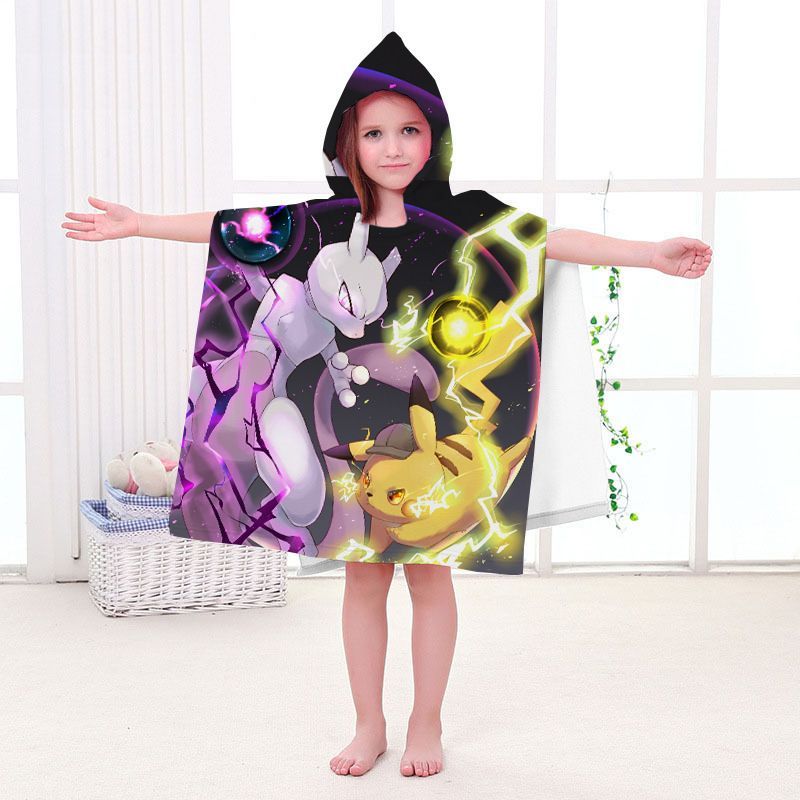 Pikachu Badetuch Pokemon Elf Strand Poncho Mewtwo Gengar Eevee Pooltücher Bademantel