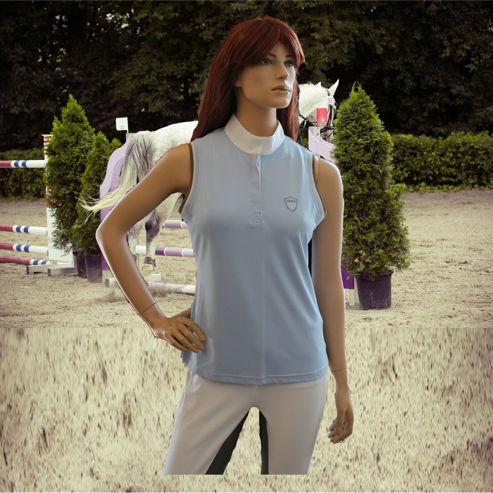 Pikeur Pikeur Damen Turnier Shirt ohne Arm, hellblau-braun, Pikeur Bluse(6024), Gr. 40