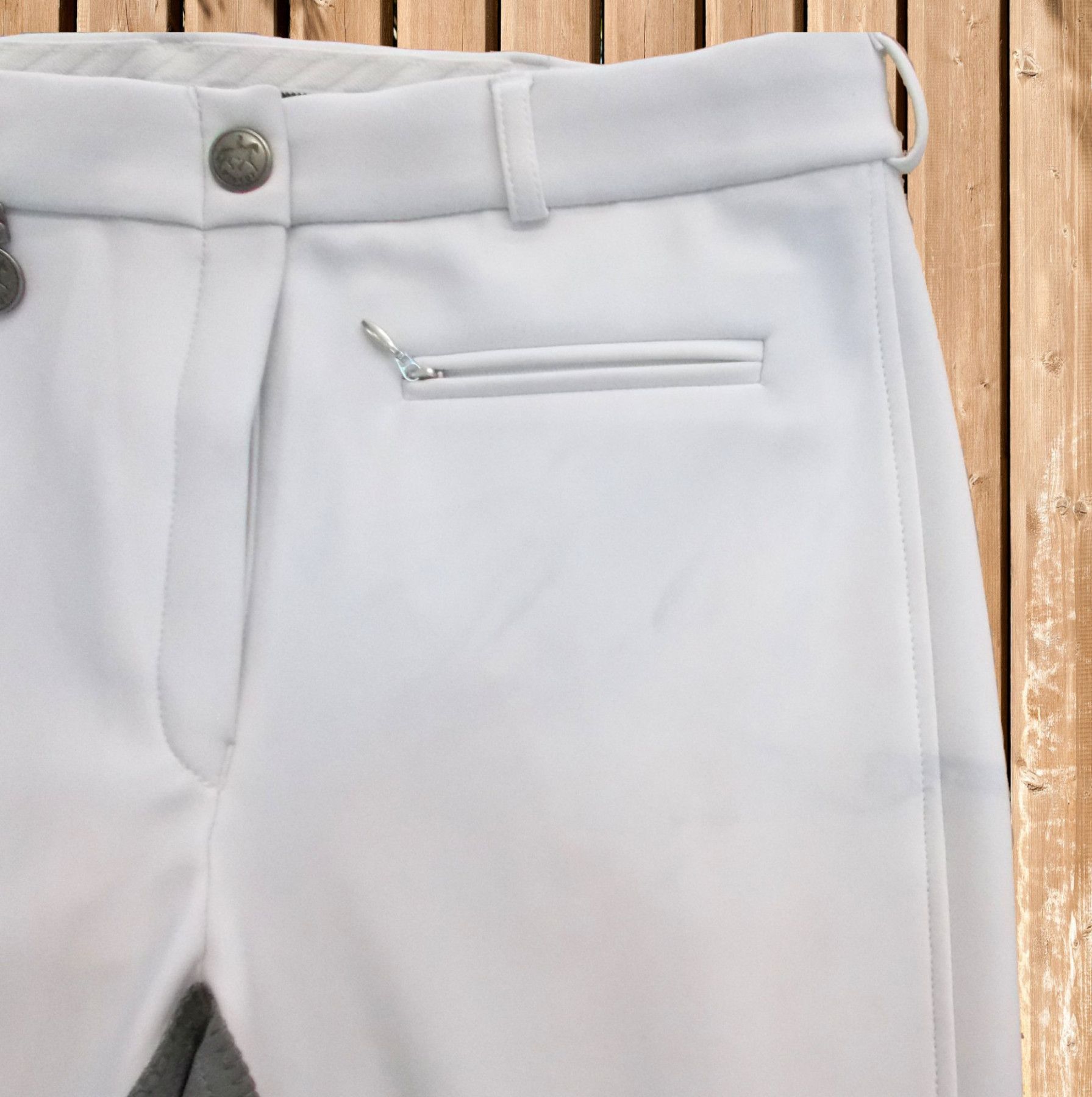 PIKEUR Reithose Lugana Kontrast Sommer Softshell • 3 4 Vollbesatz-Reithose • extem weich und elastisch • Farbe: weiß Besatzfarbe: grau • perfekte Passform • Reißverschlusstasche vorne • Beinabschluß mit Klett • atmungsaktiv • dauererlastisch • strapazierf... Mehr