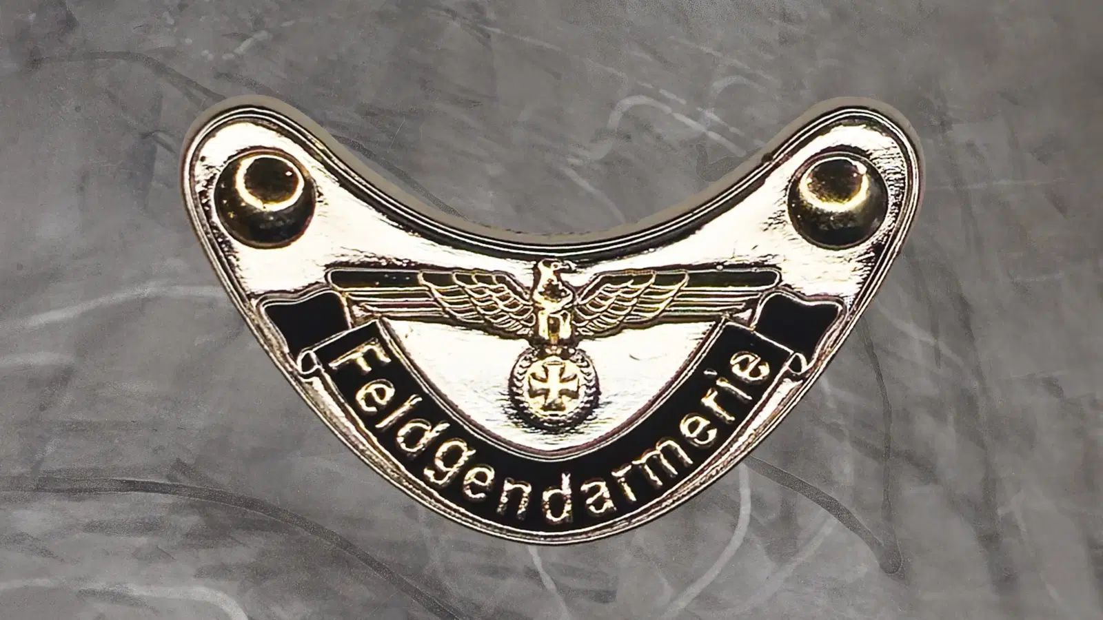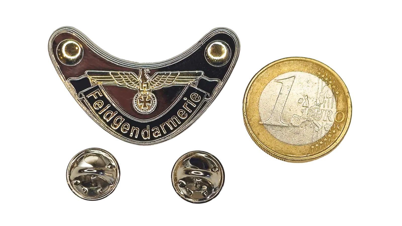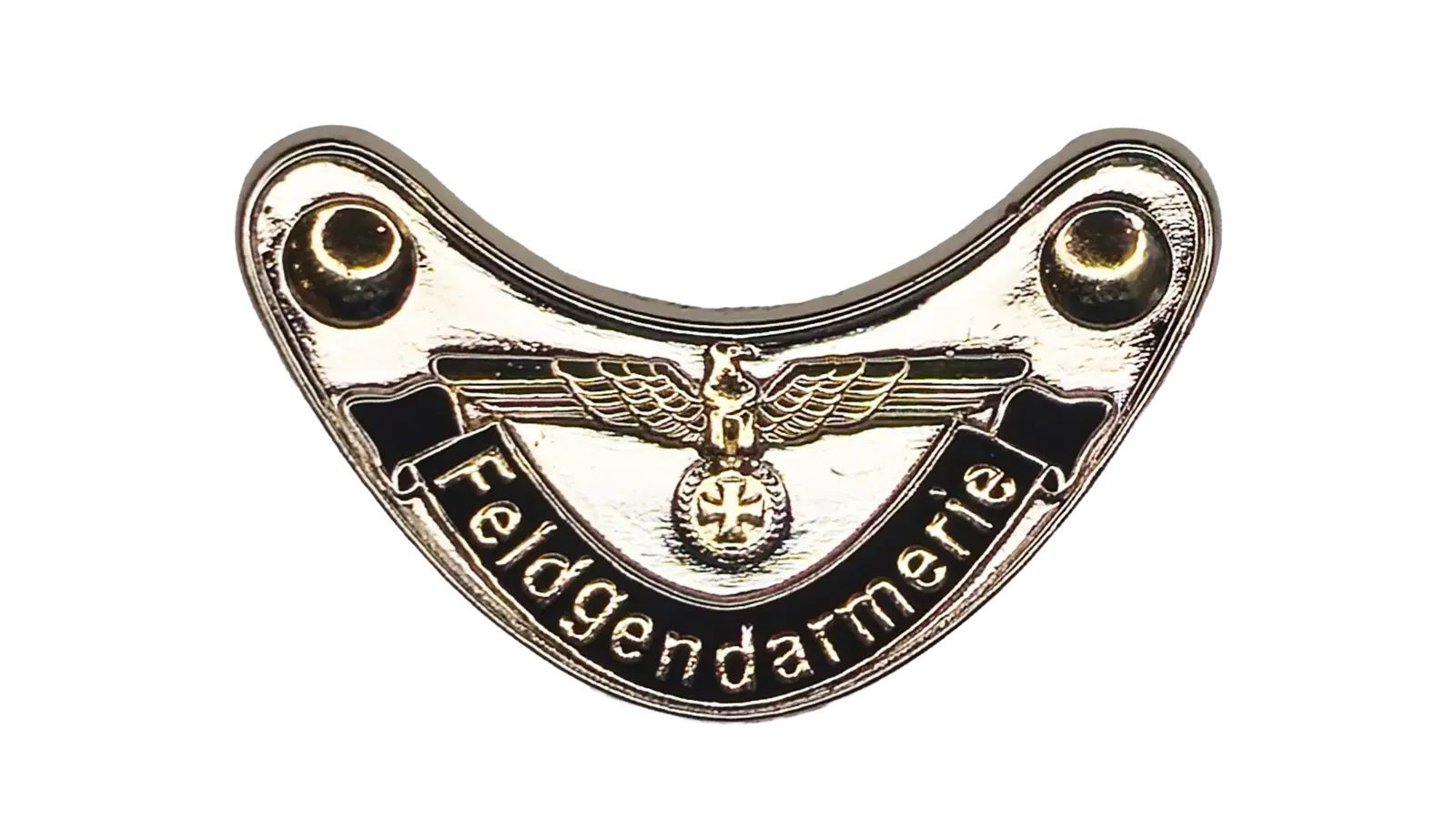 Beschreibung Artikel Details Pin Feldgendarmerie - Kettenhunde - Wehrmacht EK - 2,5 x 4 cm Dieser Ansteckpin zeigt das Abzeichen der Feldgendarmerie der Wehrmacht, auch bekannt als Kettenhunde , in einem gebogenen Design von ca. 2,5 x 4 cm. Der Pin trägt den Text Feldgendarmerie sowie einen Reichsad