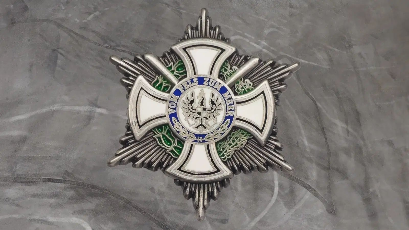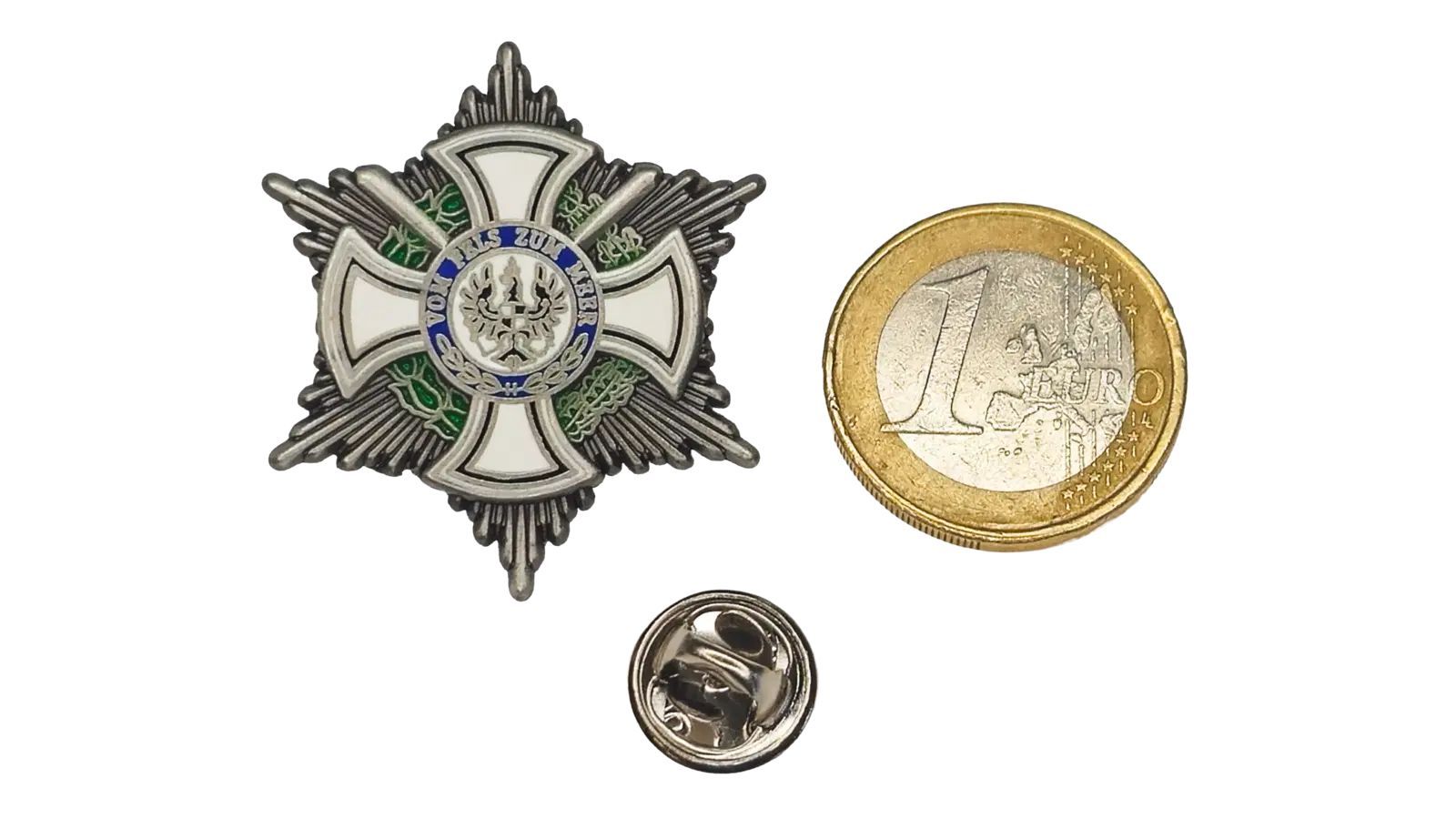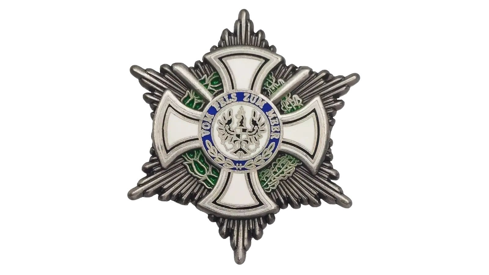 Beschreibung Artikel Details Pin Königlicher Hausorden von Hohenzollern - Vom Fels zum Meer - 3,5 x 3,5 cm Dieser elegante Ansteckpin ist eine Hommage an den königlichen Hausorden von Hohenzollern mit dem Motto Vom Fels zum Meer und einem kompakten Design von ca. 3,5 x 3,5 cm. Der königliche Hausord