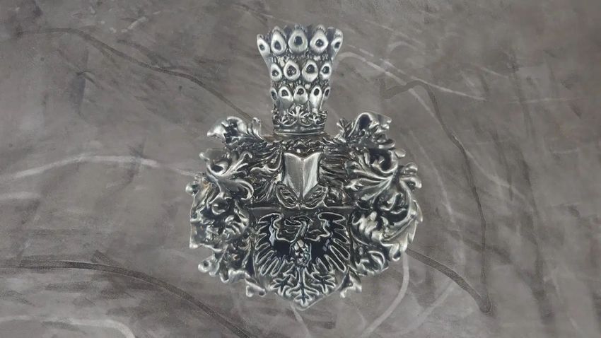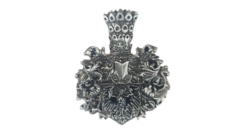 Beschreibung Artikel Details Pin Oberschlesien Prachtwappen - 3,5 x 4 cm Dieser kunstvoll gearbeitete Ansteckpin zeigt ein prachtvoll verziertes Wappen Oberschlesiens in silberner Ausführung. Mit einer Größe von ca. 3,5 x 4 cm ist der Pin massiv und auffällig gestaltet. Das detailreiche Relief zeigt