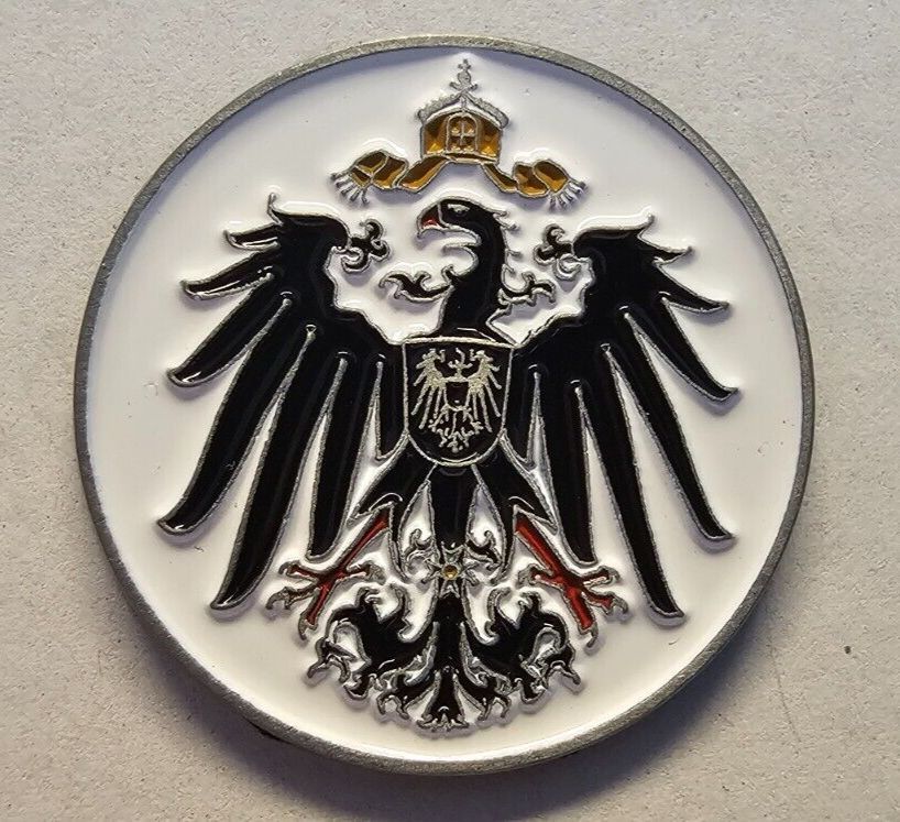 Pin rund Deutsches Kaiserreich Reichsadler Befestigung: Schmetterlingsverschluss Marke: Markenlos Maße: ca. 3cm Material: Metall Produktart: Pin Zustand: Neu & Original verpackt