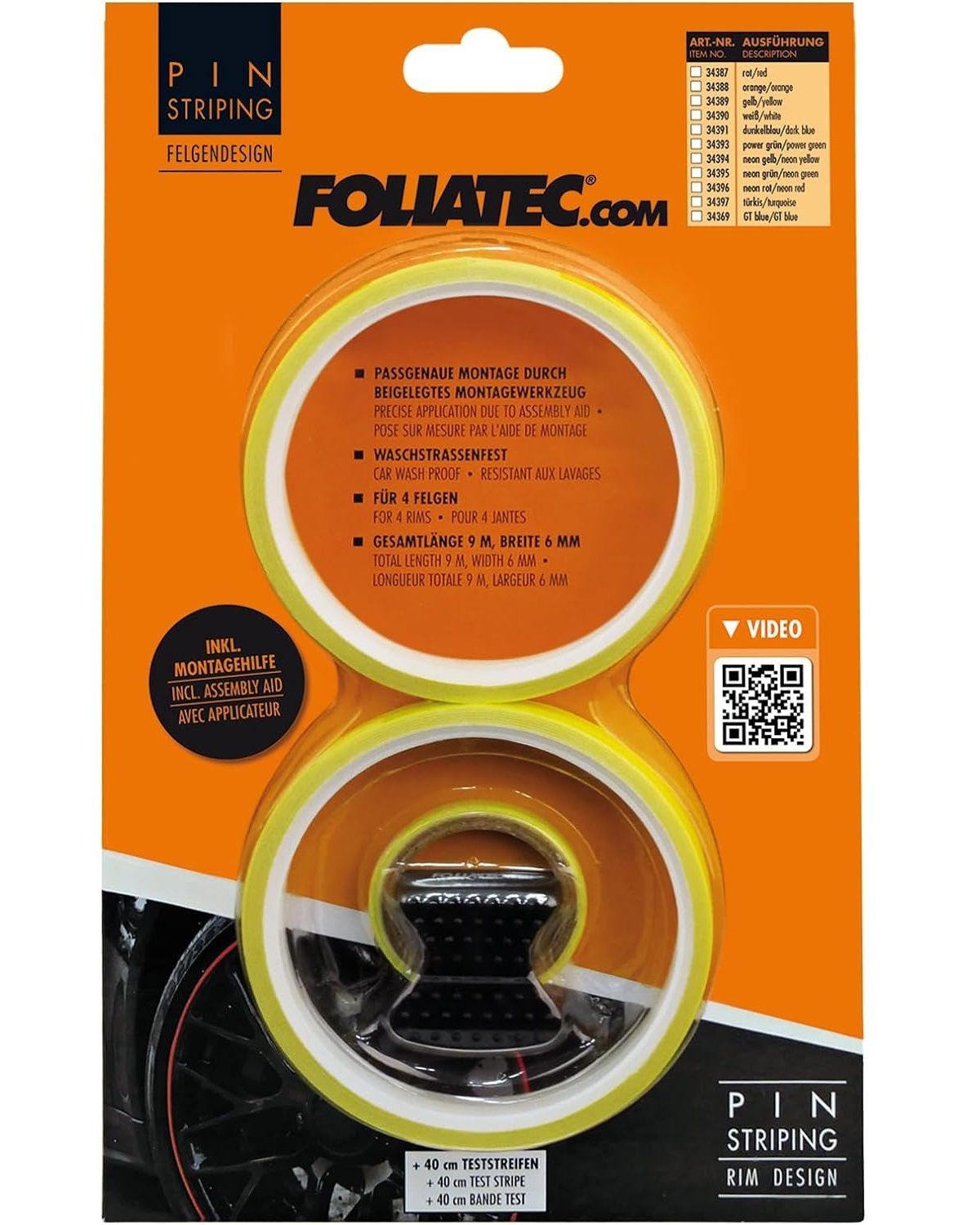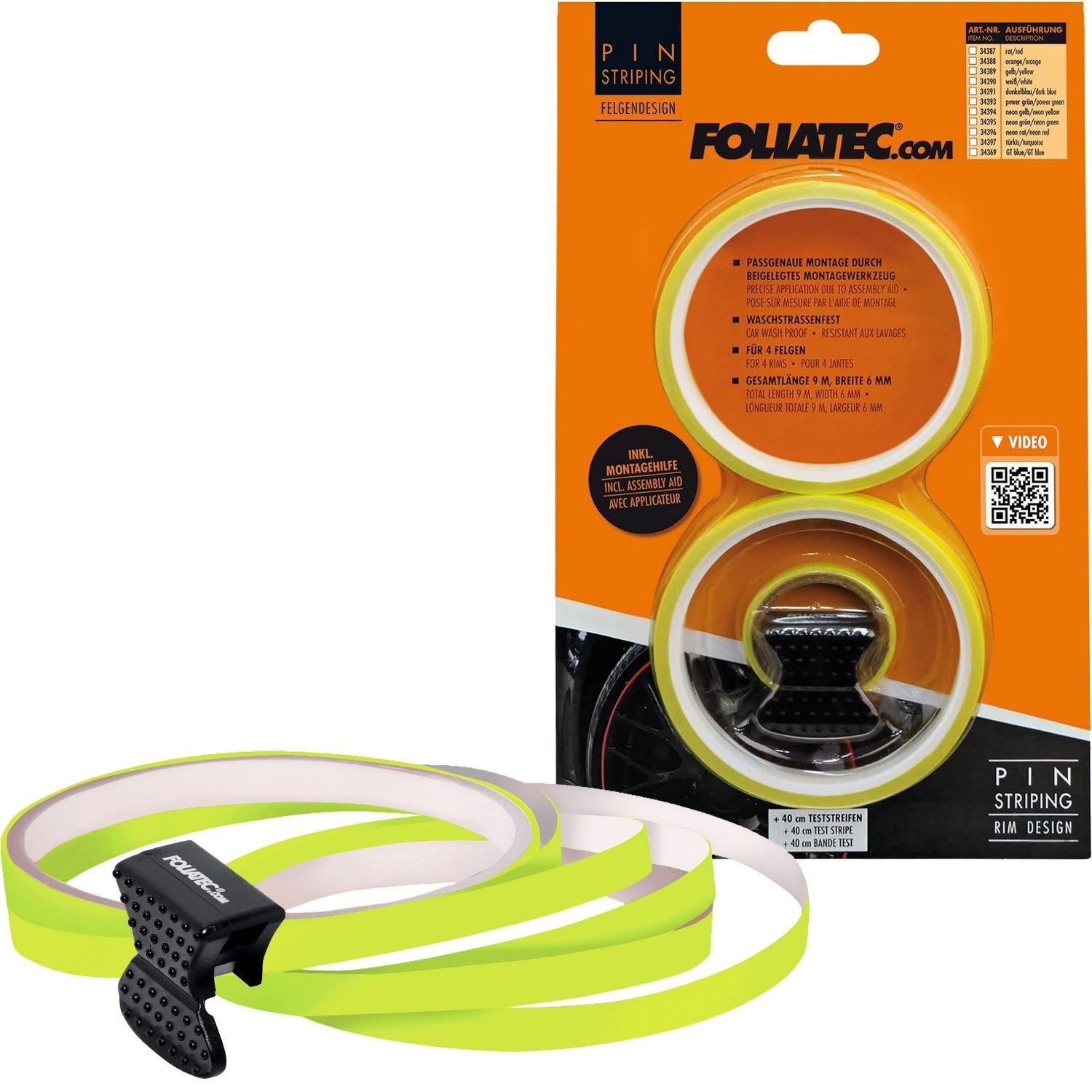 Foliatec PIN Striping Felgendesign inkl. Montagetool Neon Gelb