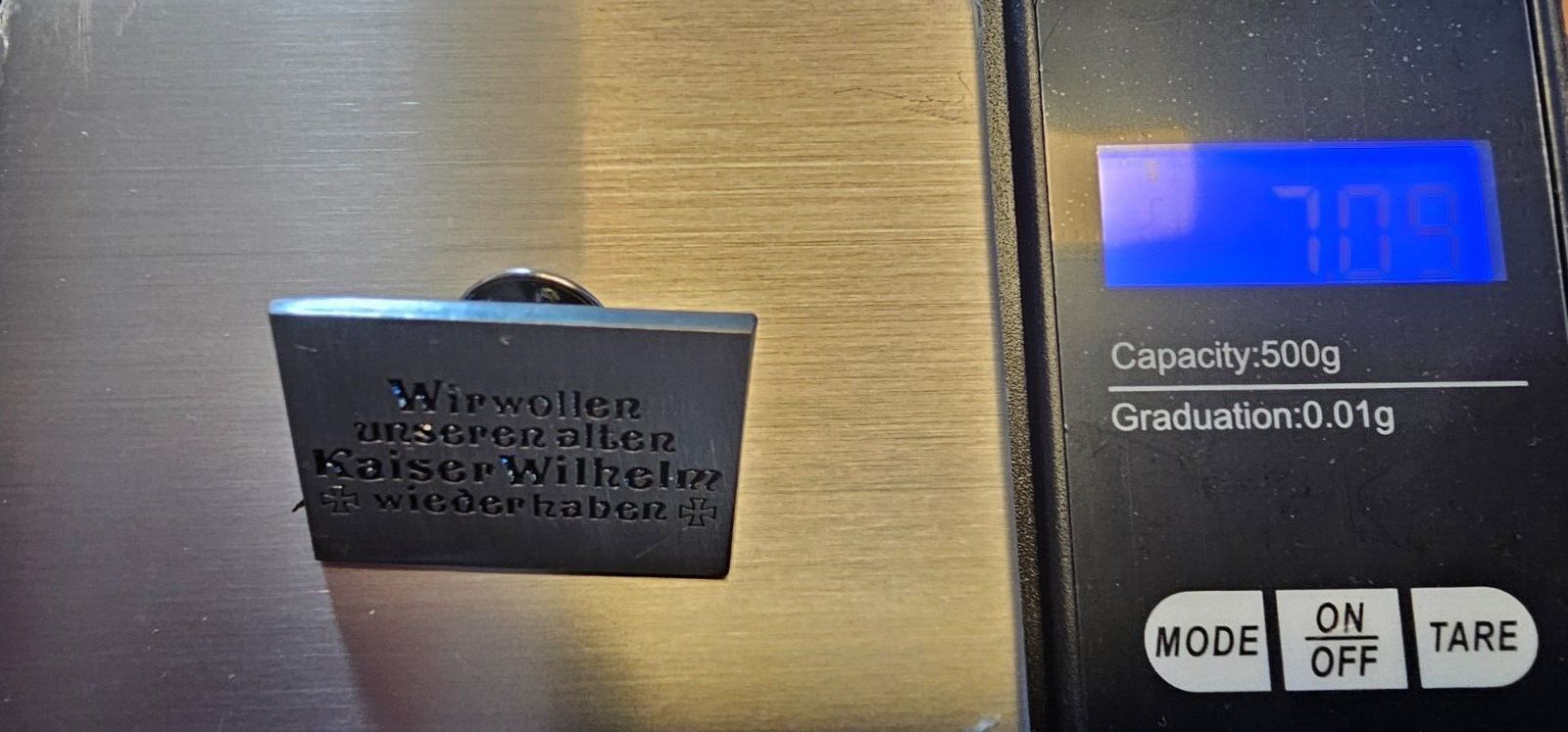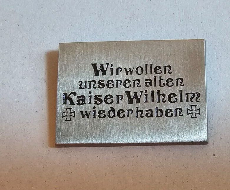 Pin Viereck Wir wollen unseren alten Kaiser Wilhelm wieder haben Befestigung: Schmetterlingsverschluss Marke: Markenlos Maße: ca. 3,5cm x 2,3cm Material: Metall Produktart: Pin Zustand: Neu & Original verpackt