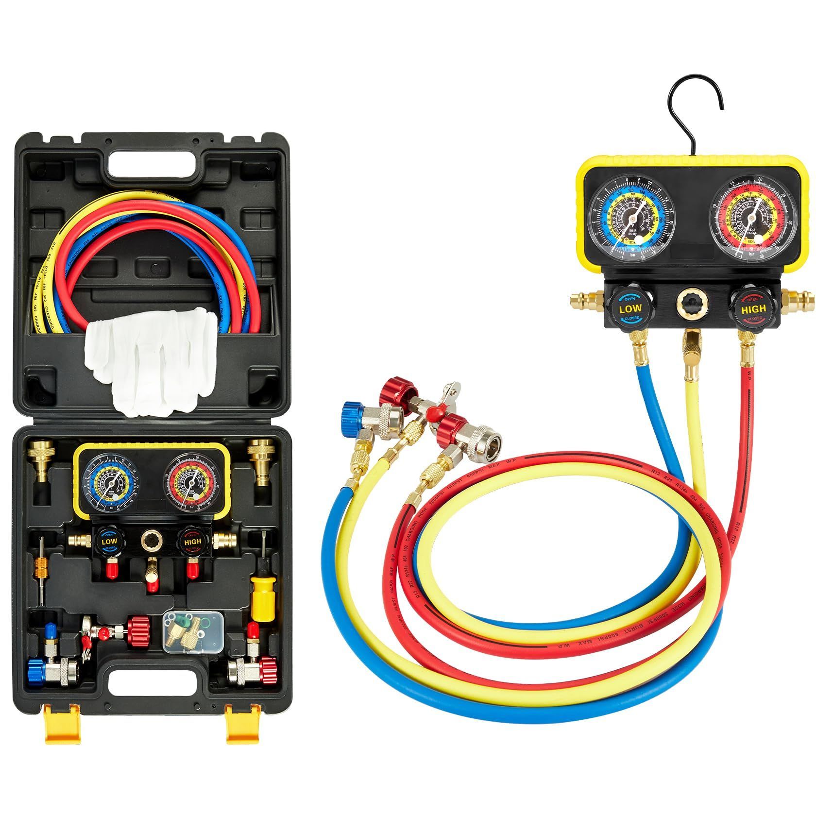 Pindex Manometer Set fér Kältemittel R1234YF R134A R404A mit 3 Schläuchen