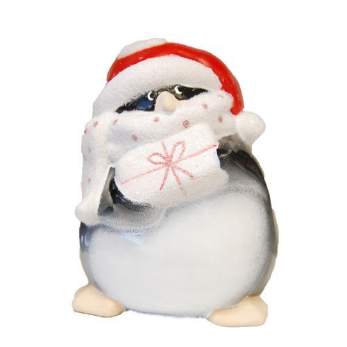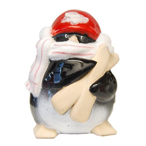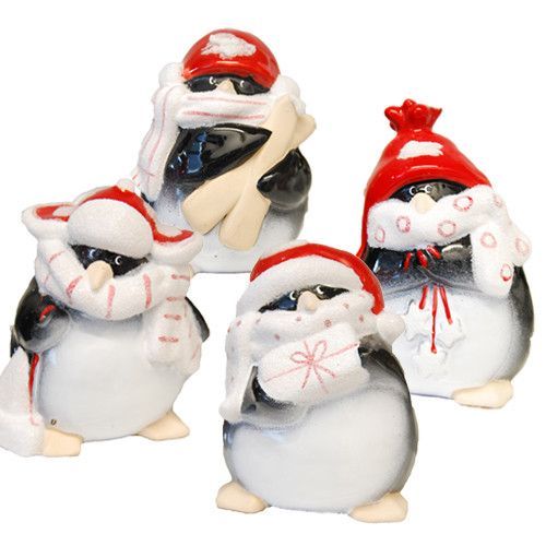 Wurm Pinguin aus Keramik Deko Weihnachten mit Geschenk Stern Mütze Ski rot weiß NEU