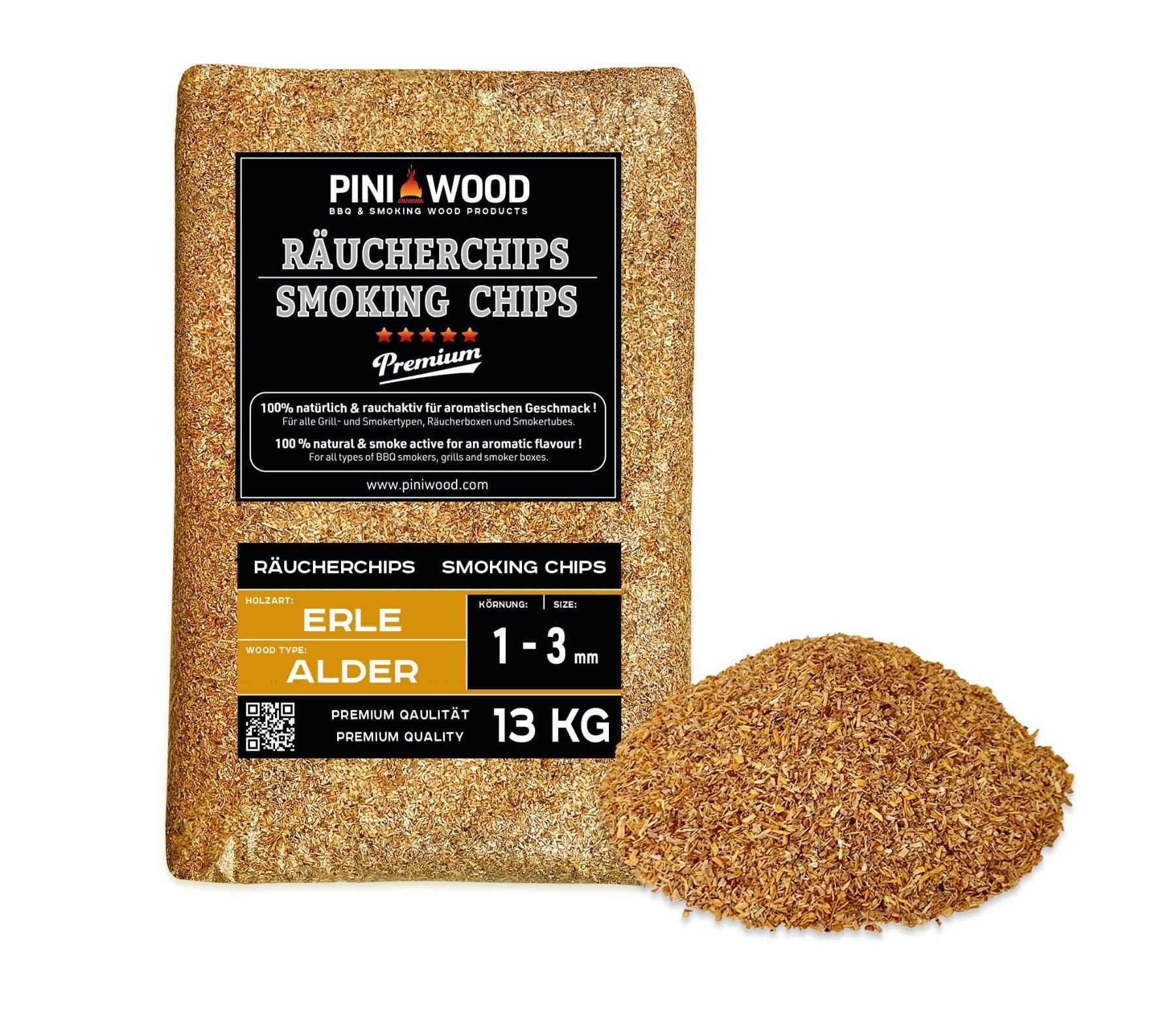 PINI 13 Kg Räucherchips Erle ohne Rinde 1-3 mm Smoking Chips Räucherspäne