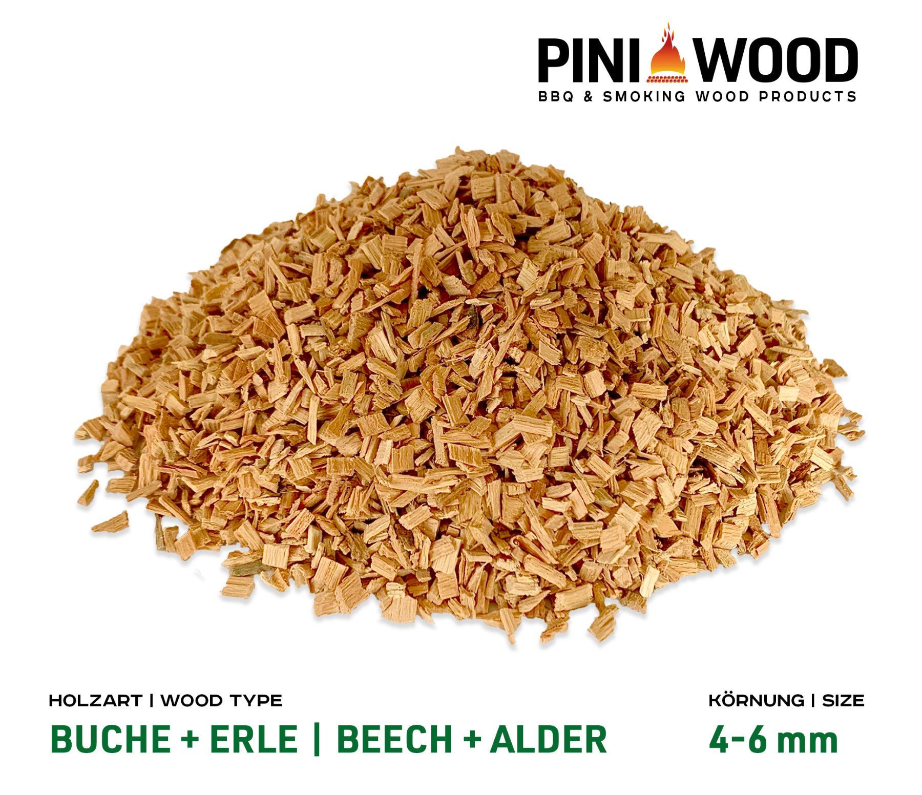 PINI 15 Kg Räucherchips Buche und Erle gemischt 4-6 mm Smoking Chips Räucherspäne