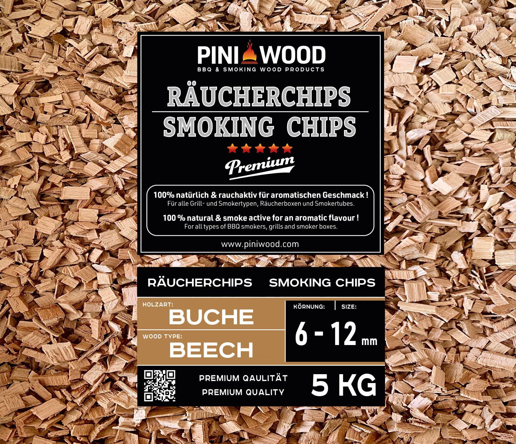 PINI 5 Kg Räucherchips Buche 6-12 mm Smoking Chips Räucherspäne